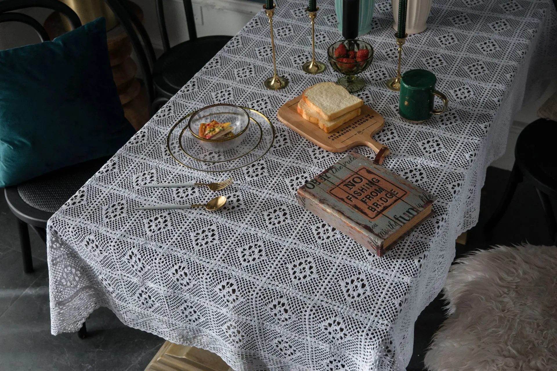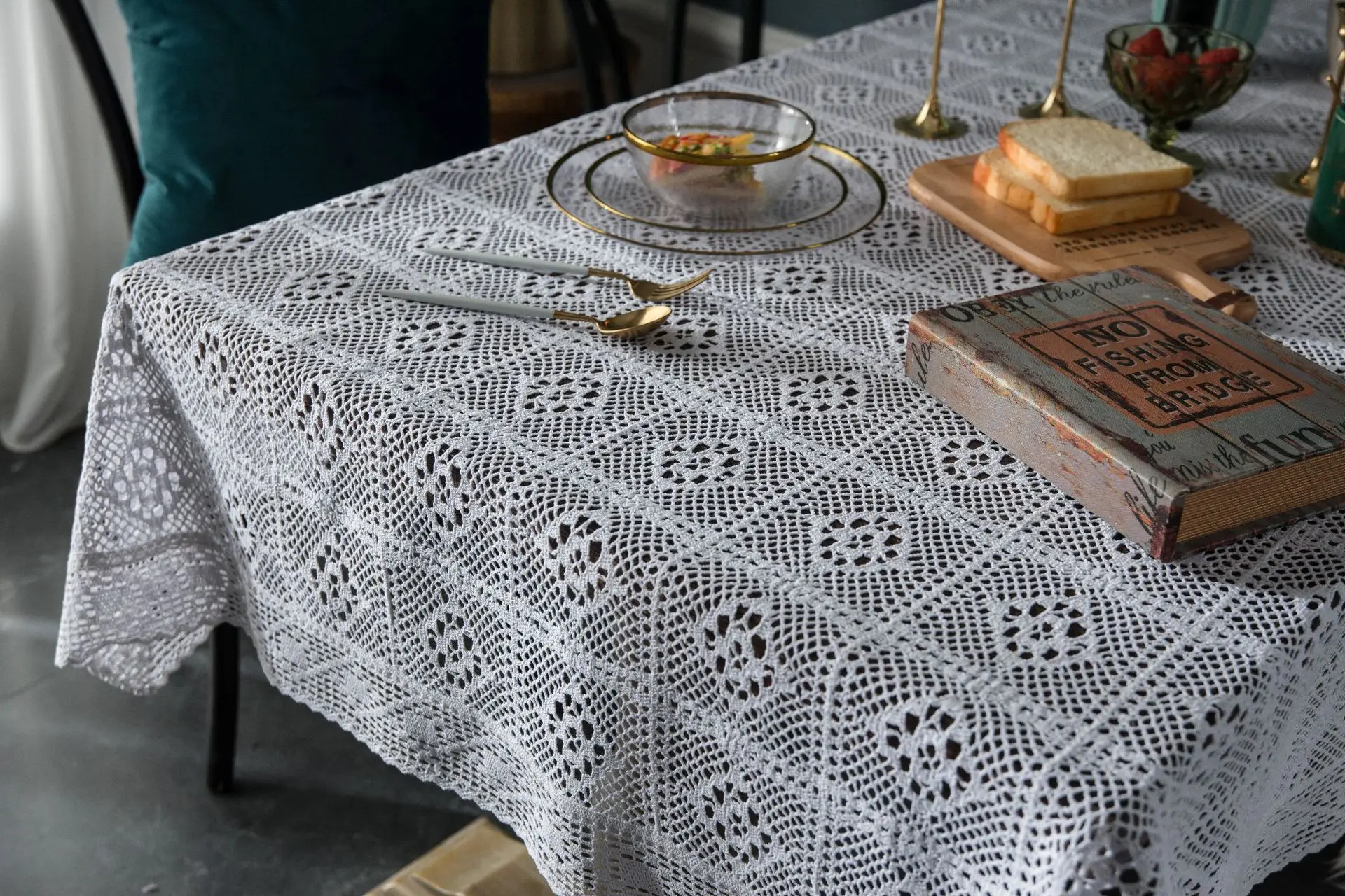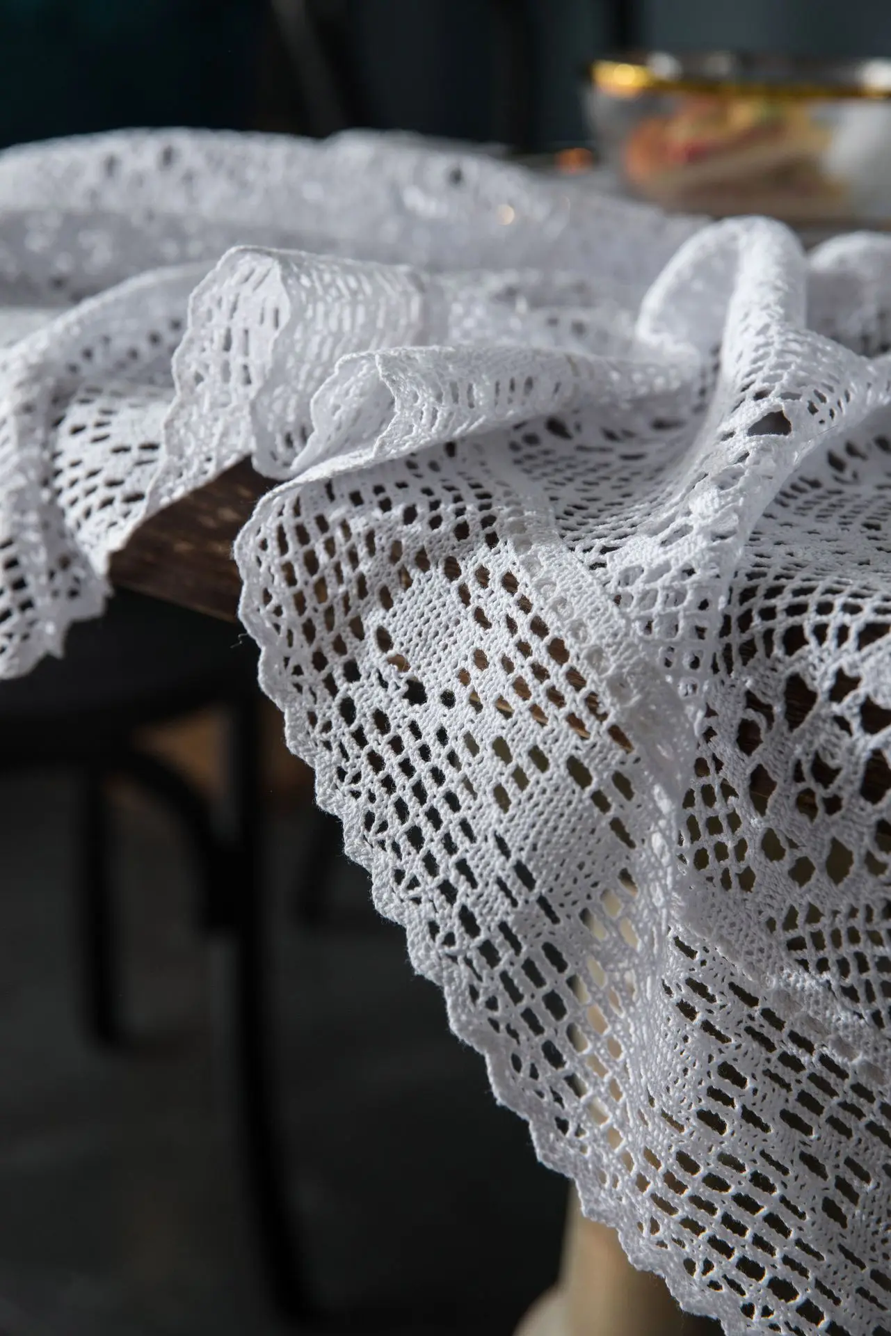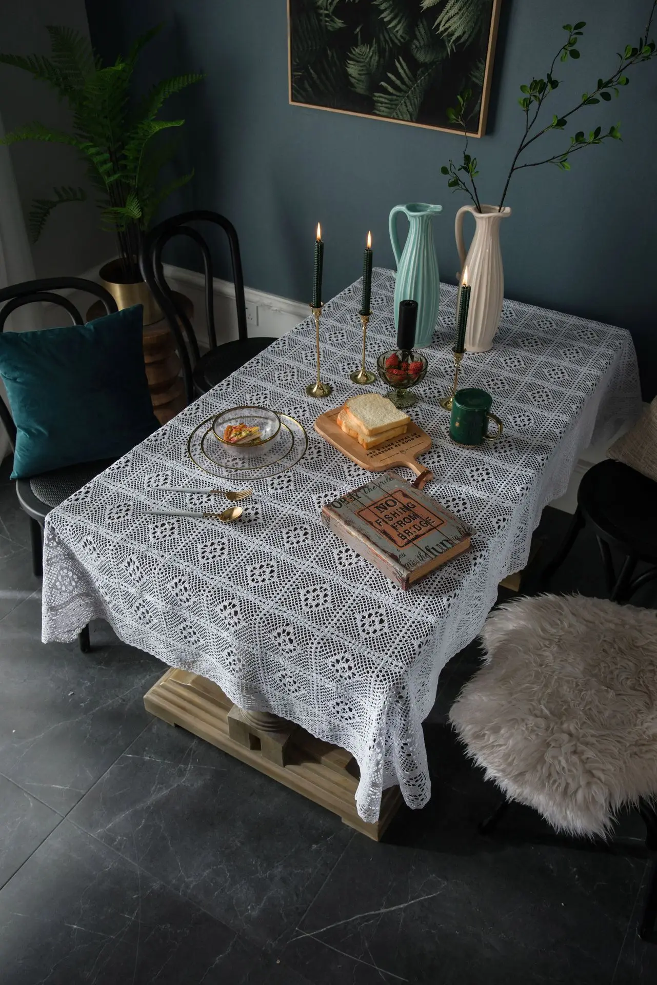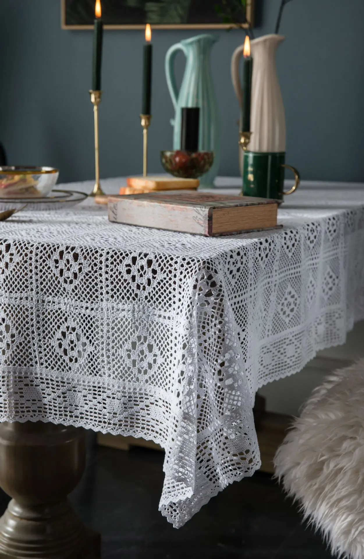 American style country knitting white crochet tablecloth hollowed out Linen Tablecloth tea table tablecloth cover