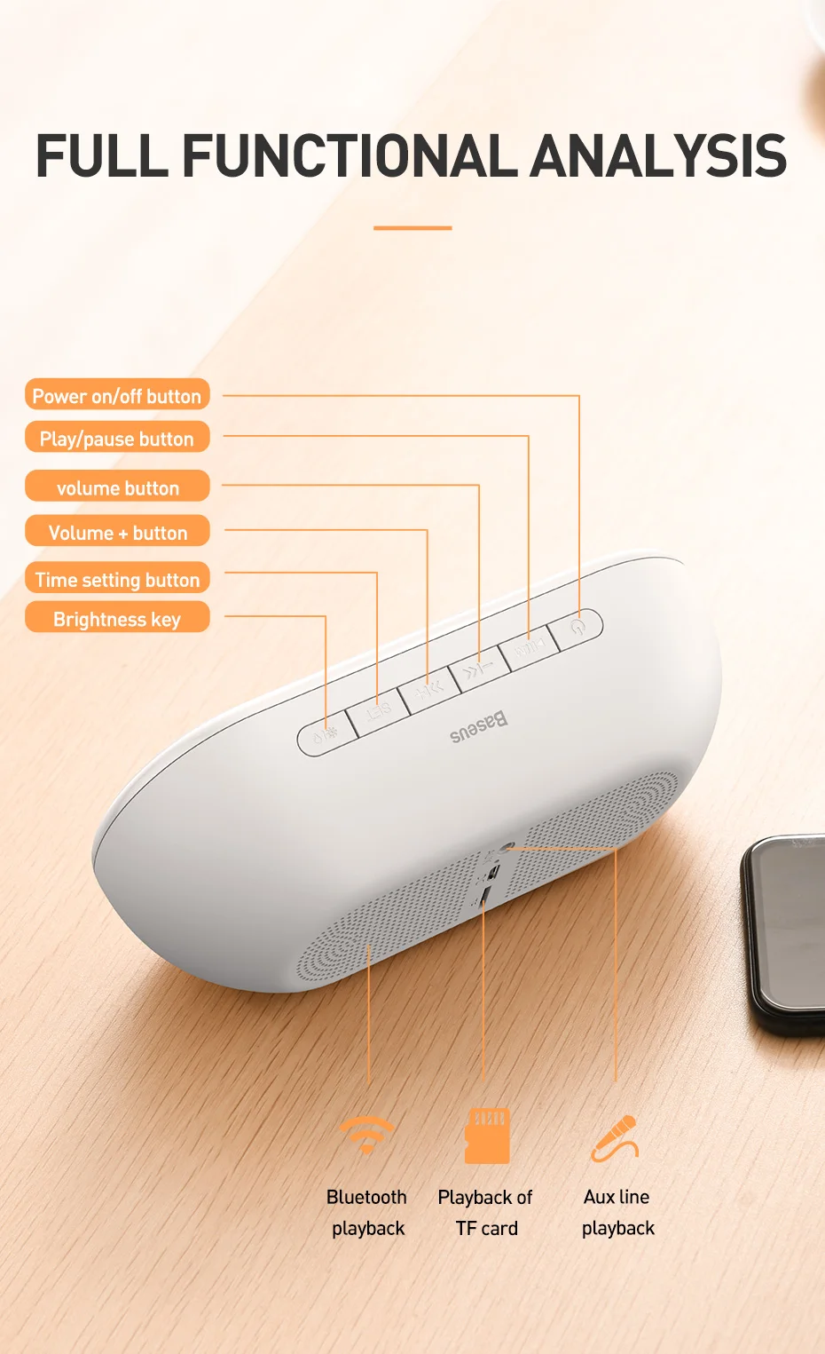 8 "Bluetooth подключения и использования 18 "Set Radio Воспроизведение с TF-карты на 36 дюймов Настройки времени 56 дюймов Комплект БУДИЛЬНИКА 1 '29" Регулировка яркости цифрового экрана на 2 '10"