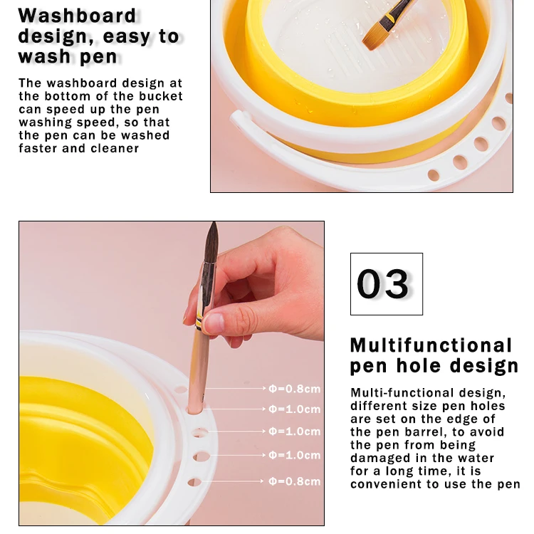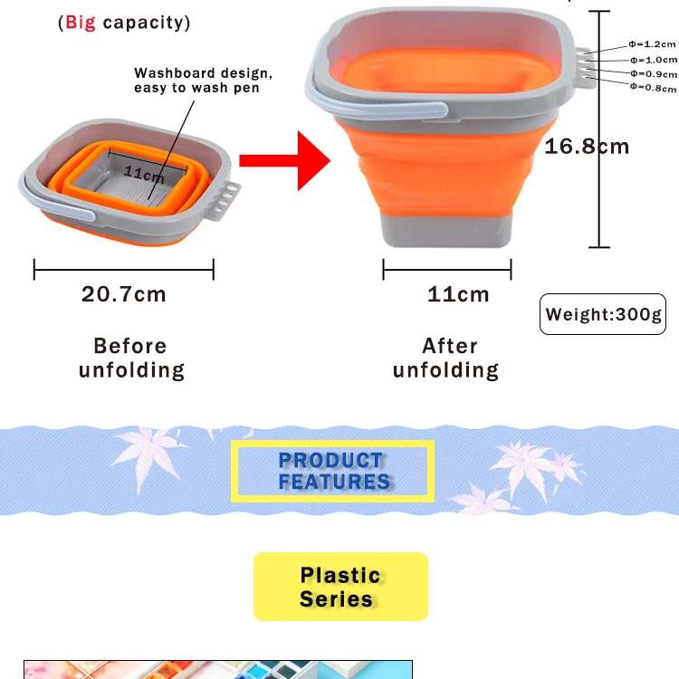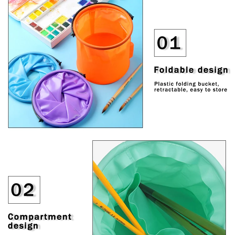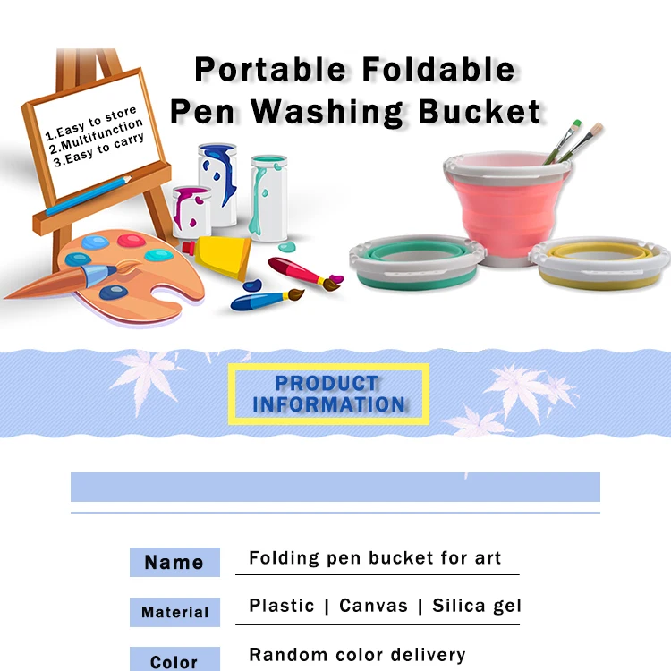 Tips: Due to the multiple colors of the product, the specified color is not supported, and it is shipped randomly from the warehouse Portable Foldable Pen Washing Bucket Easy to store | Multifunction | Easy to carry Name: Folding pen bucket for art Material: Plastic | Canvas | Silica gel Color: Random color delivery Features: Portable collapsible pen-washing bucket, diverse material and styles, durable, convenient folding, and effective space saving