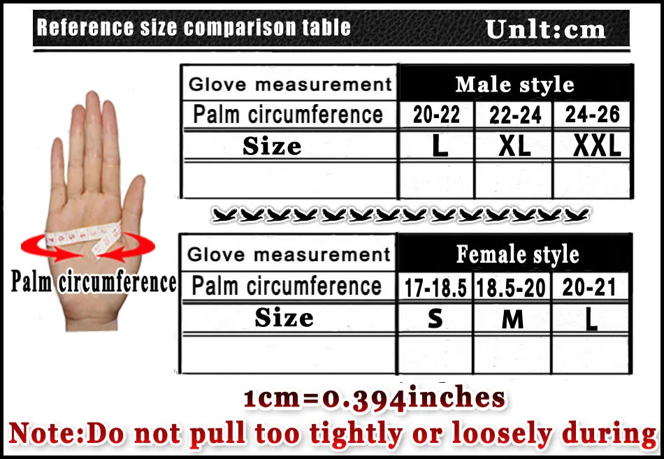 The length of this style of gloves is 23-25 cm. The difference between each size is 1 cm.