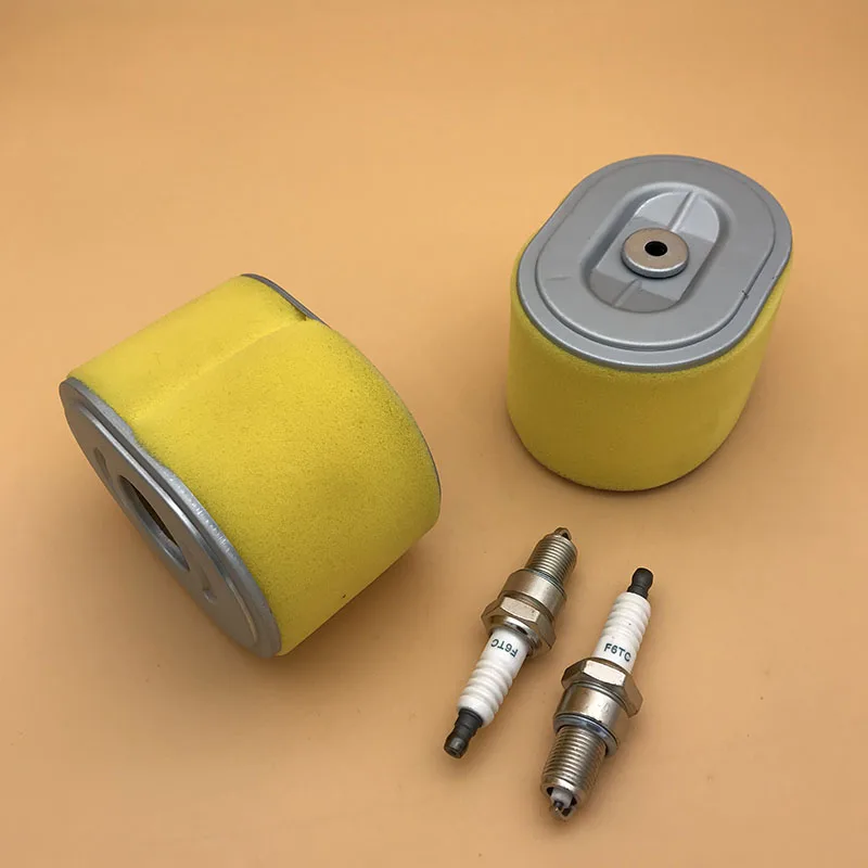 Аксессуары для газонокосилки воздушный фильтр и свечи зажигания подходят для HONDA GX140 GX160 GX200 запасные части двигателя Номер детали OEM: 17210-883-902, 17210-883-505 Посылка: 2 X воздушный фильтр, 2 x штепсельная вилка
