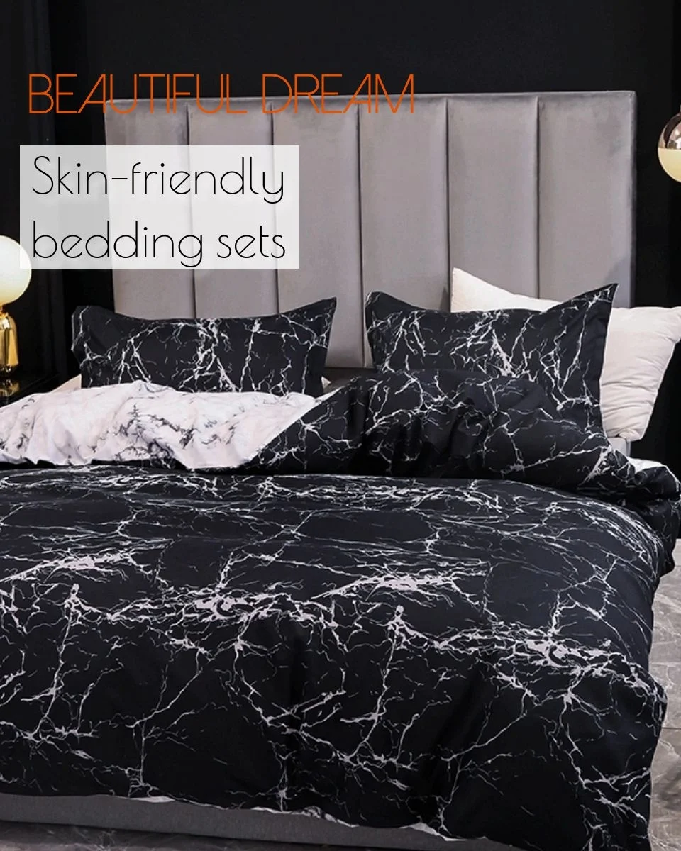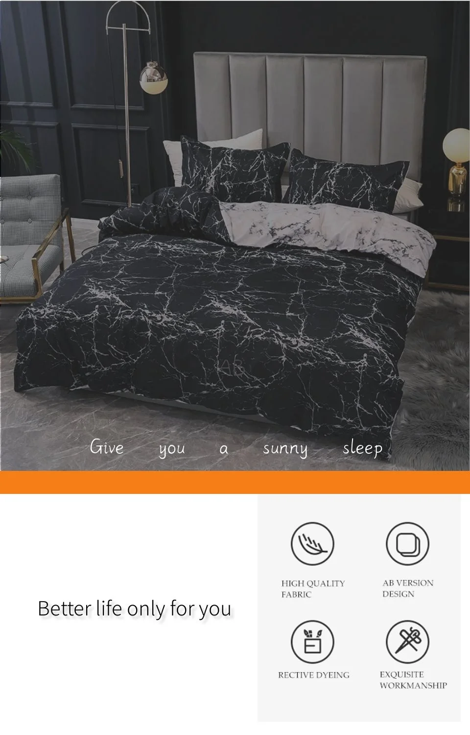 Название: Европейский Американский черный комплект постельного белья с черным мраморным узором, пододеяльник для кровати, Королевский размер с двумя наволочками, мужское постельное белье, одинарное двойное