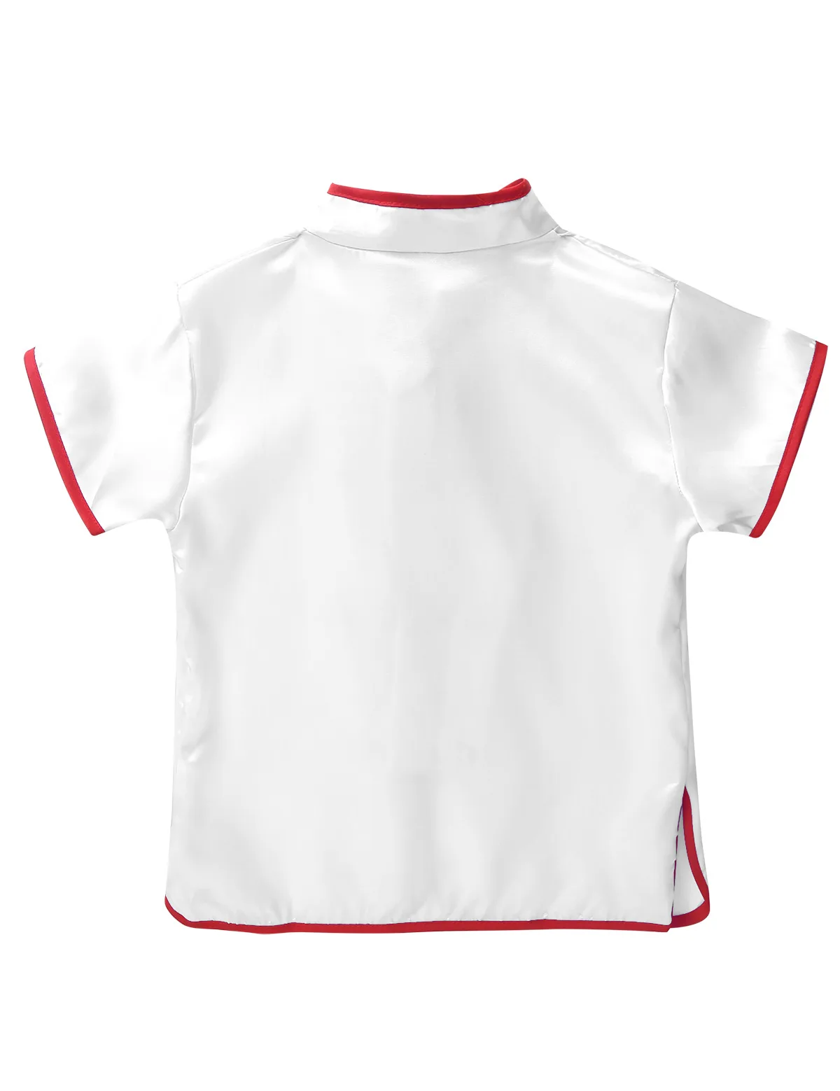 Рубашка с короткими рукавами; Застежка на пуговицах спереди для удобного одевания. Брюки с эластичным поясом и эластичными отверстиями для ног.