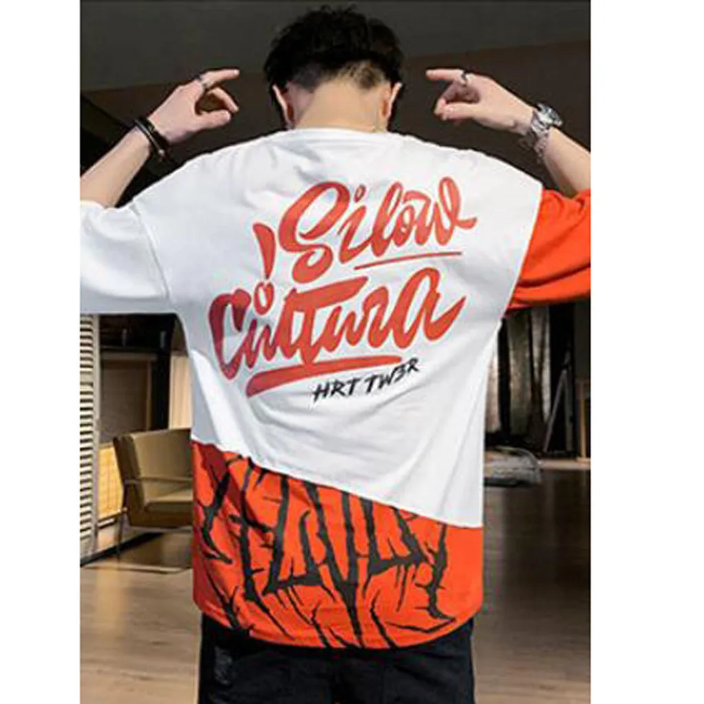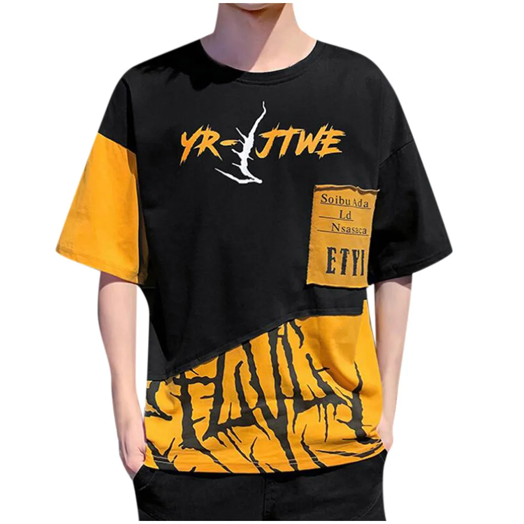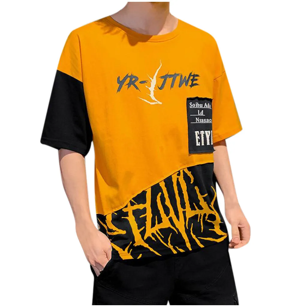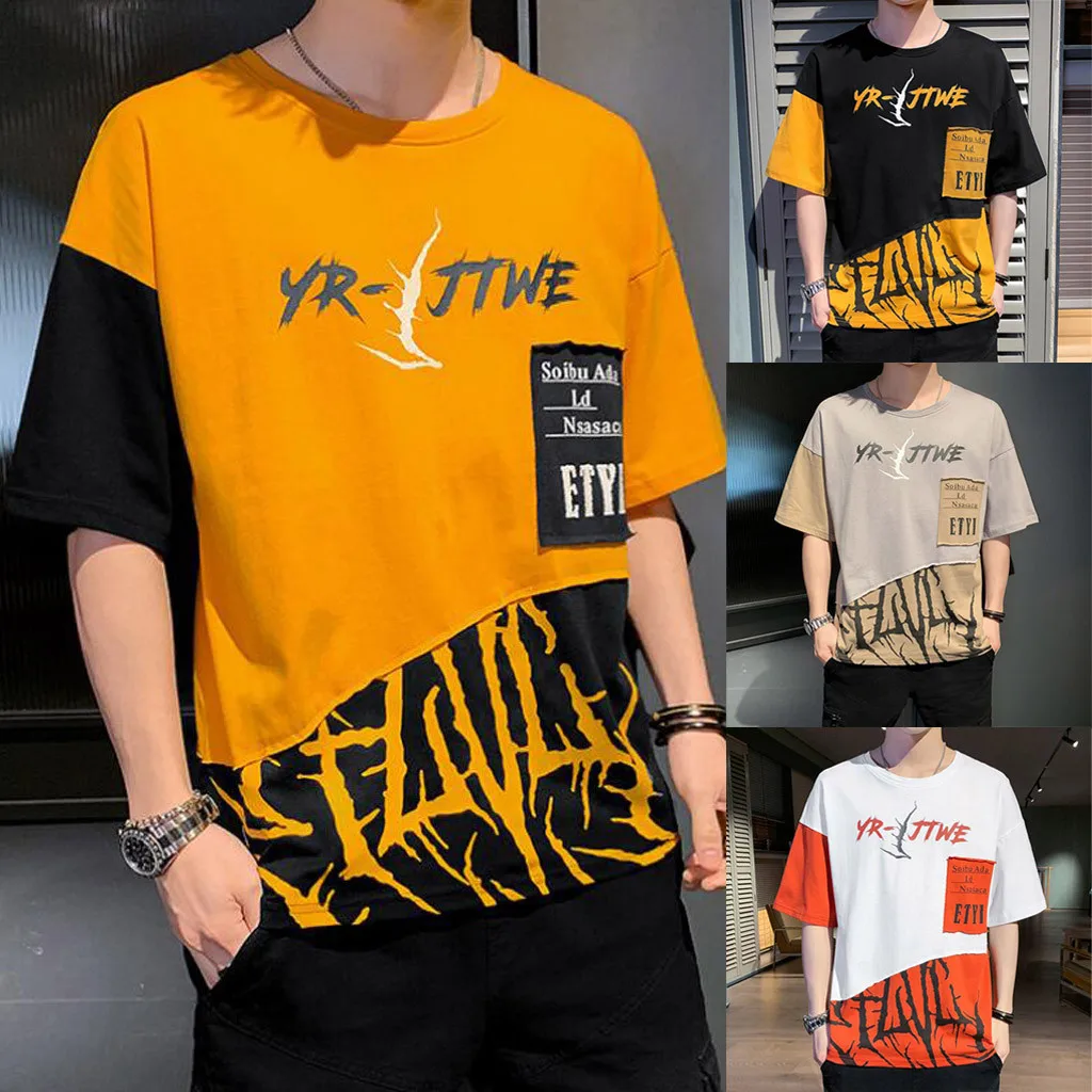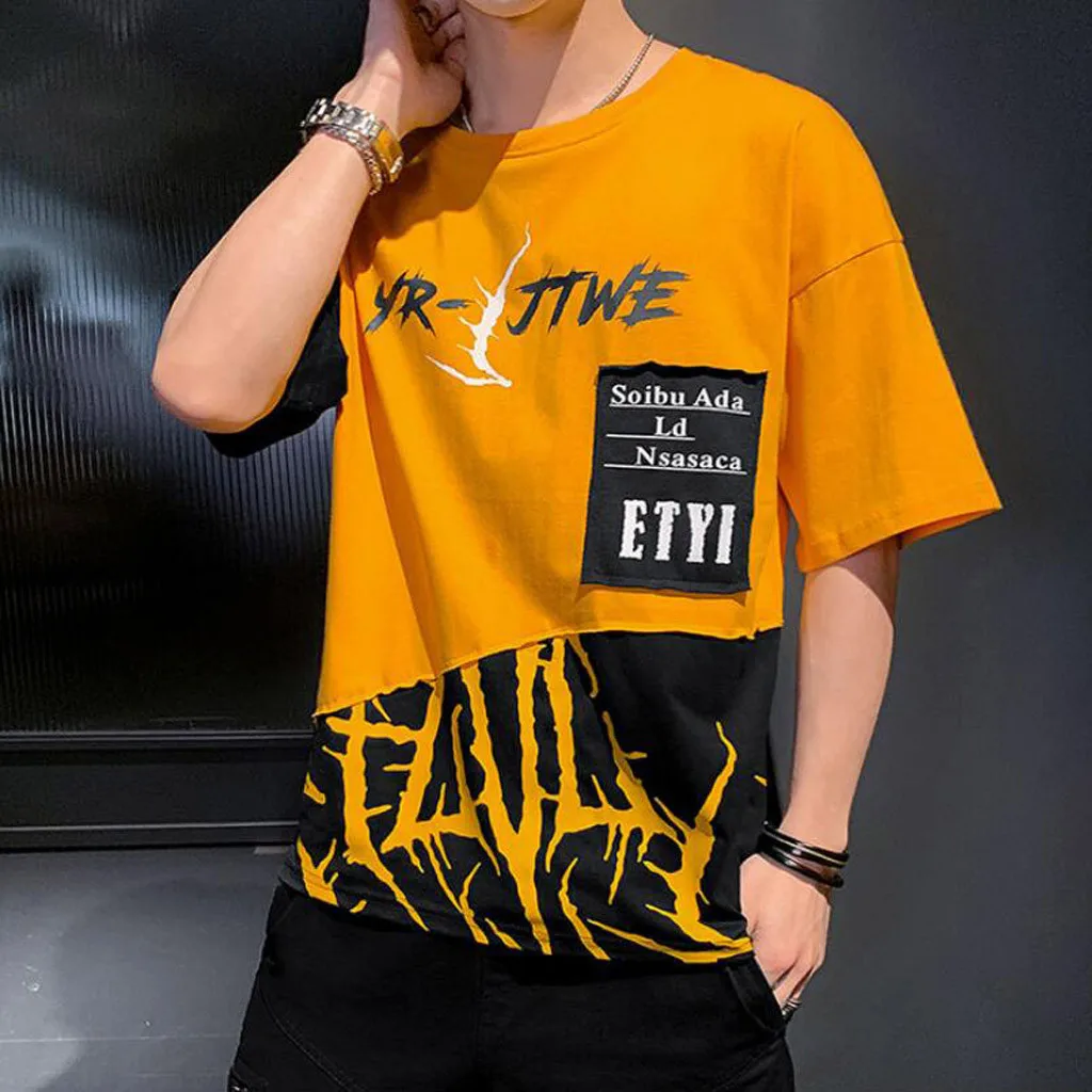 1. Особенности: модные мужские топы, СращиваниеФутболка с короткими рукавами и принтом.2. Материал: полиэстер. ПолиэстерВолокна, изготовленные из высококачественной ткани, мягкие и удобные. Прозрачная, Воздушная и легкая, удобная. Ткань растягивается.