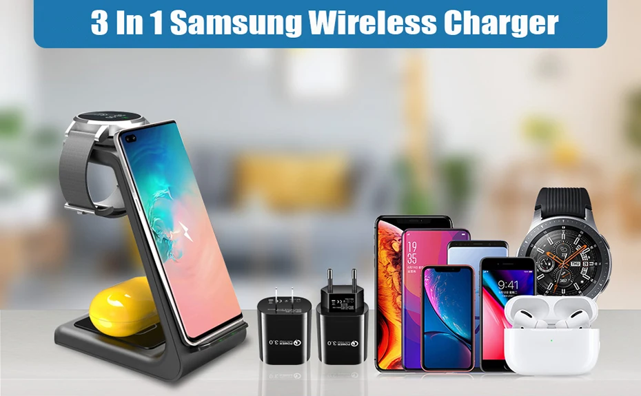 3 в 1 беспроводная зарядная станция для Samsung Galaxy для Samsung Watch для Samsung Buds для Samsung S10 для Samsung S9 быстрое Qi Беспроводное зарядное устройство для Samsung Note10 для Samsung Note9 для Samsung S8
