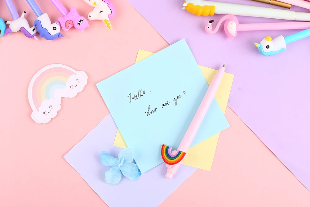 1, Style: Cute Animals Pig Flamingo Alpaca Unicorn Horse Flower Rabbit Promotional Creative Kawaii Cute Anime Talent Gel Pen 2, Material: Plastic Pens 3, Package: Mixed styles colors 60pcs/set 4, Feature: Adult Teacher Nurse Student Kids Smooth Writing Daily Use Pen 5, Function: Office Business Signature Tool School Student Exam Stationary 6, Custom: Yes, Logo is_Customized with MOQ, Accept PS(Photoshop), AI(Adobe Illustrator), CD(CorelDraw) format
