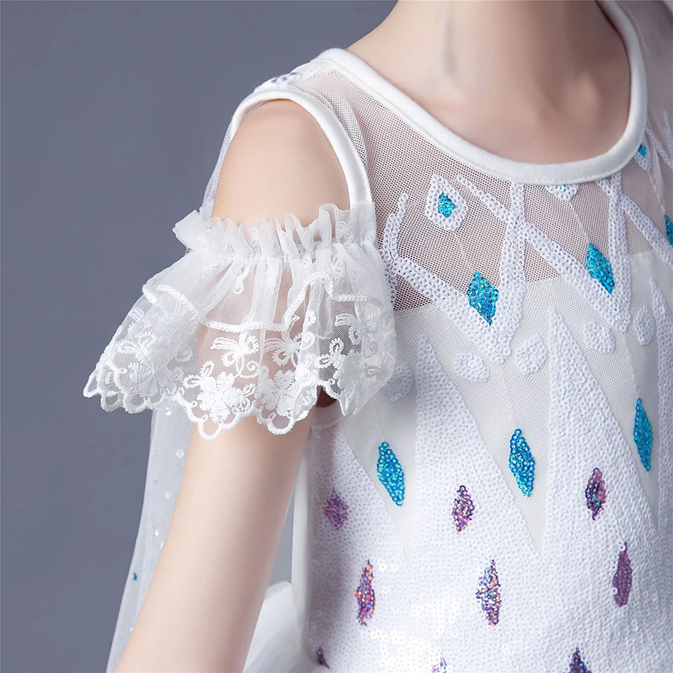 Тема: белые платья принцессы Эльзы для костюмированной вечеринки 2020 Материал: сетка, хлопок, полиэстер, кружево, пайетки Вес: около 0,15-0,35 кг/шт Возраст: 2,3,4,5,6,7,8,9,10,11,12 лет Размер: 100-110-120-130-140-150-160 Размер США: 2T,3T,4T,5T,6T,7T,8T,9T,10T,11T,12T Посылка: платье + сумка из полипропилена