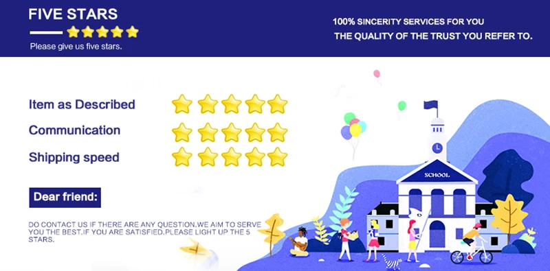 1. Если вы удовлетворены нашей продукцией и обслуживанием, пожалуйста, оставьте нам положительный отзывы с общим детальным рейтингом продаж (DSR) 5 звезд.