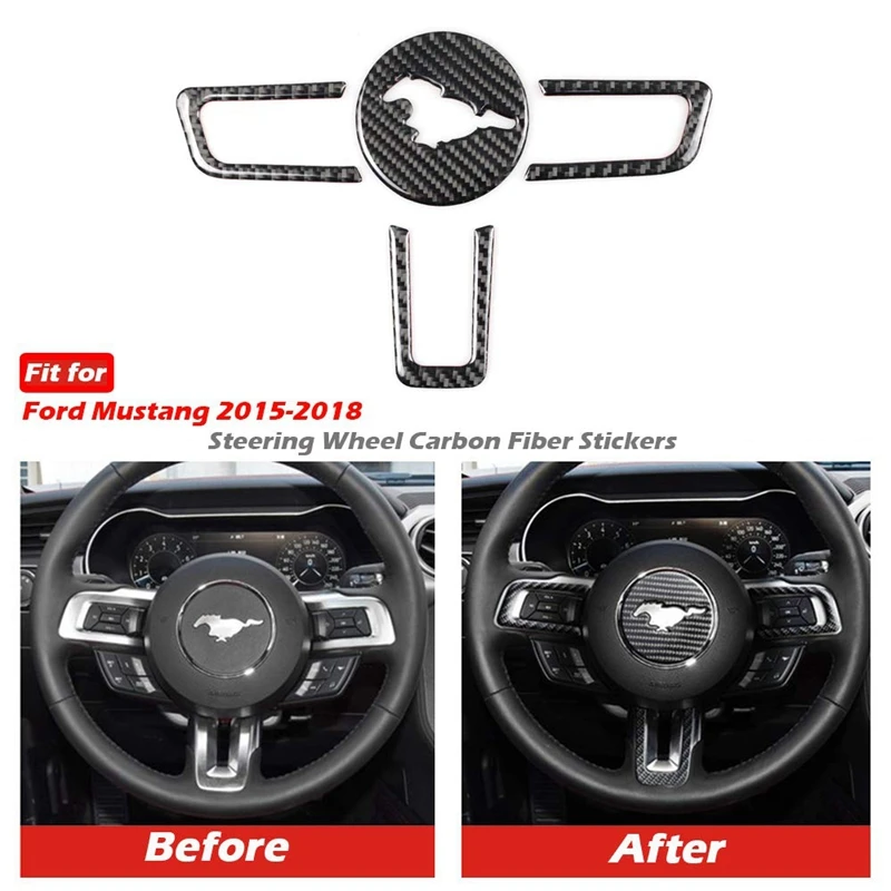 Real Carbon Fiber Steering Wheel Insert Decoration Cover Emblem Sticker for Ford Mustang 2015-2017 4Pcs