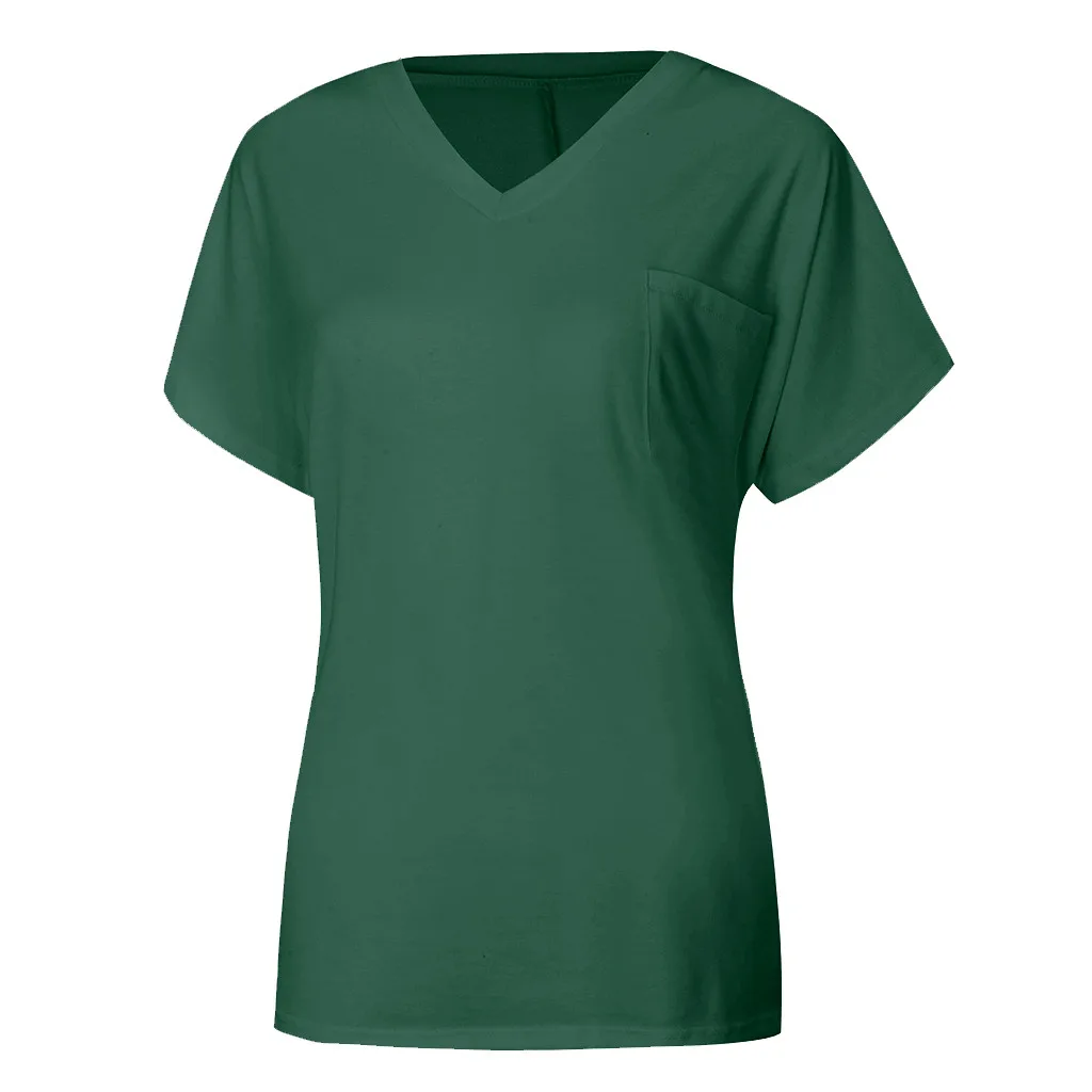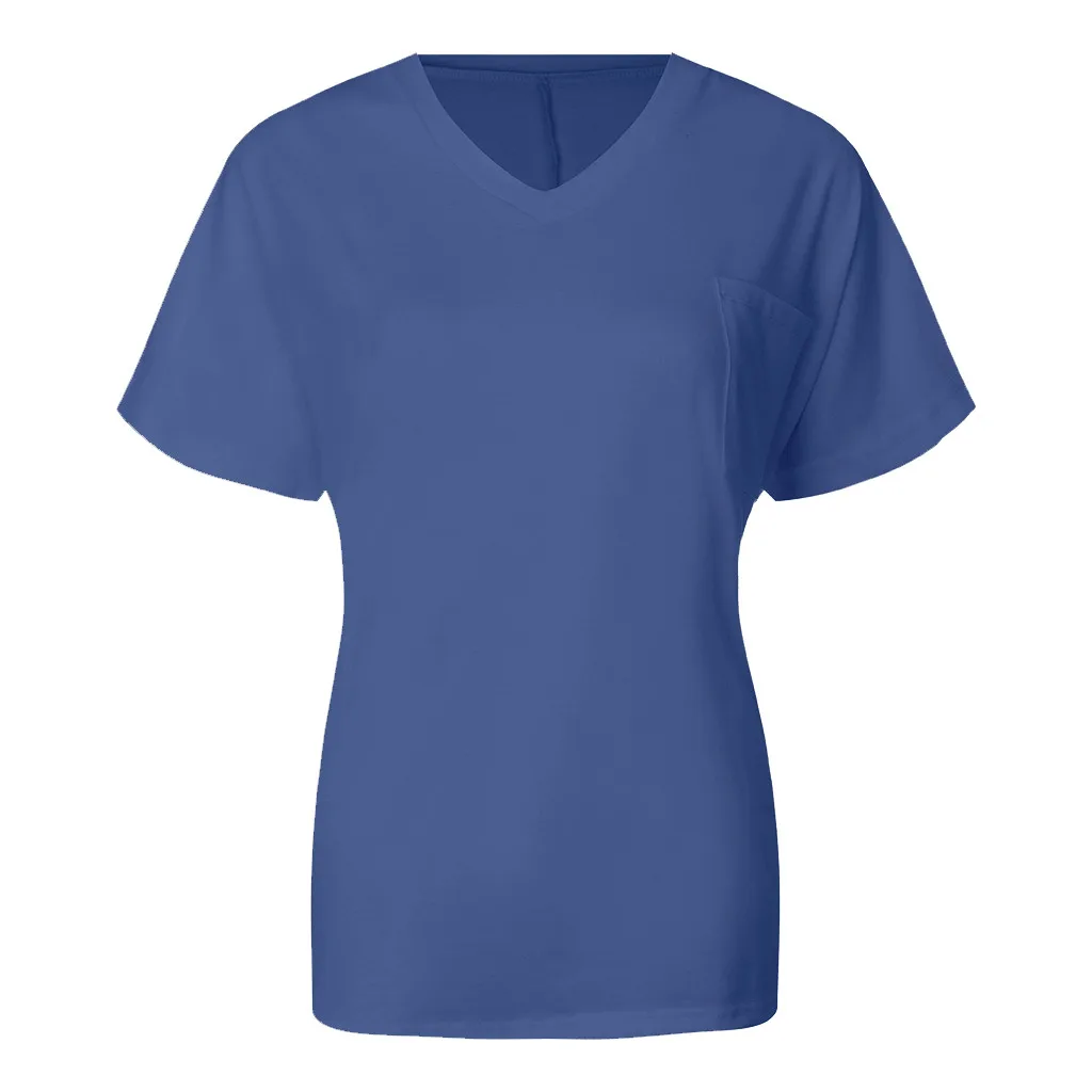 Модная женская Повседневная футболка с коротким рукавом и карманом, Однотонная футболка с v-образным вырезом, летние обычные рубашки, женская одежда, новинка 2020