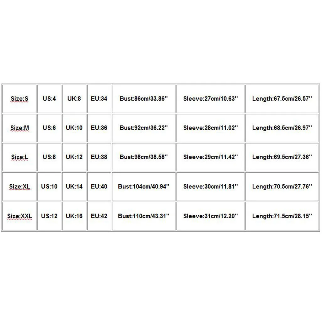 Информация о продукте: Особенности: женская повседневная одежда, короткий рукав, карман, однотонный, v-образный вырез, топы, футболка, блузка, летние и весенние повседневные топы. Материал: полиэстер. Изготовлен из высококачественной ткани, легкий, мягкий и удобный. Стиль: Эта блузка с вышивкой отлично подойдет под куртки или отдельно, носится с джинсами, шортами, каблуками или плоской подошвой, как вам нравится Повод: повседневные, день рождения, свидания, танцевальные представления, вечерние, свадебные, для работы, дома и многое другое. Подходит для лета и весны. Обратите внимание: ручная или деликатная машинная стирка в холодной воде/Не отбеливать/сушить в горизонтальном положении, вся наша одежда предназначена для азиатской фигуры, что означает, что она будет меньше, чем обычные европейские размеры. Пожалуйста, обратитесь к нашей собственной таблице размеров вместо таблицы размеров, и вы можете найти ее на наших фотографиях или из описания. Что вы получаете: 1 Женская футболка Таблица размеров: Размер: S, US:4, UK:8, EU:34, обхват груди: 86 см/33,86 дюйма, длина рукава: 27 см/10,63 дюйма, длина: 67,5 см/26,57 дюйма Размер: M US:6 UK:10 EU:36 Бюст: 92 см/36,22 ''рукав: 28 см/11,02'' Длина: 68,5 см/26,97'' Размер: L US:8 UK:12 EU:38 Бюст: 98 см/38,58 ''рукав: 29 см/11,42'' Длина: 69,5 см/27,36'' Размер: XL US:10 UK:14 EU:40 Бюст: 104 см/40,94 ''рукав: 30 см/11,81'' Длина: 70,5 см/27,76'' Размер: XXL US:12 UK:16 EU:42 бюст: 110 см/43,31 ''рукав: 31 см/12,20'' Длина: 71,5 см/28,15''