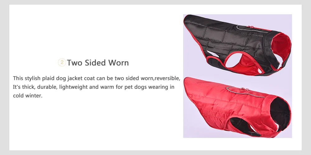 Название изделия: Светоотражающая зимняя куртка для собак, двусторонняя 1. Материал: изготовлен из полиэстера, нейлона ripstop с наполнителем из полиэстера, с подкладкой из стеганого материала. Теплый и прочный, моющийся, сохраняет вашу собаку удобной и теплой во время холодной осени, холодной зимы, снежной погоды и т. д. 2. Светоотражающий и двусторонний: прошитый светоотражающей отделкой, сделает вашу собаку более заметной и безопасной в ночное время. Стильный двусторонний дизайн делает эту куртку более модной и цветной по желанию. 3. Конструкция с водонепроницаемым открытием и поводком: водонепроницаемый внешний слой, защищает вашего щенка от воды, снега и ветра, молния, открывающаяся сзади на шее, обеспечивает доступ к ошейнику/шлему собаки, таким образом, вы можете легко прикрепить поводок/свинец. 4. Регулируемый и легкий: поставляется с системой застегания крючков и петель, надевается/снимается, делает его более эластичным и гибким, легкий, но теплый материал гарантирует свободу движения вашей собаки.