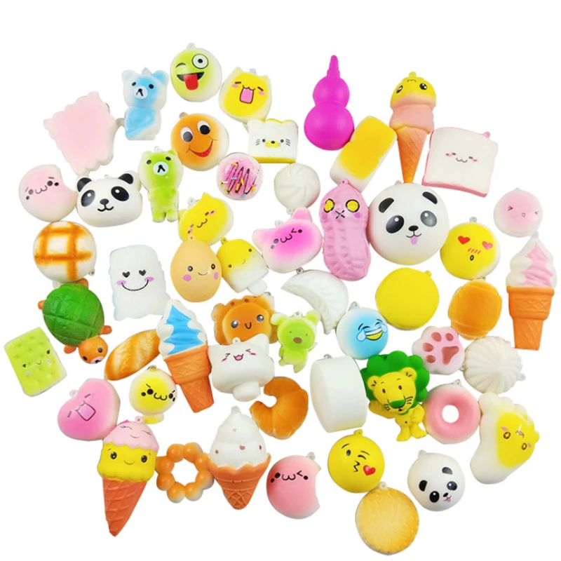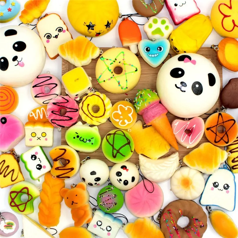 Material:Elastic Environmentally PU Size per pice: 10pcs 20 pcs Style: toy/collections/cellphone straps Pattern: squishy cake Quantity: 1pcs Applicable age:more than 6 years old Squishy: Super slow rising when you look at it, they're so cute that you may feel better, or even all your bad feelings will be gone.It can be a stress reliever. Sponge charm is really comfortable touch, realistic look, sweet smelling and super kawaii It's fun to squeeze, and it sounds so gross! Gross as in your kids will love this! It helps children stay focused in school. Cute and soft charms for cellphones, bags, keys, gifts, collecting, and more! Also As stress relief toys for giving vent to your emotion. You won't be able to keep your hands off these silly, super soft and very slow rising squishies, making the box of soft squishy toys great presents or individually as birthday party favors for boys or girls. Squishy Toy Cute Cake Bread Animal Antistress Ball Squeeze Mochi Rising Toys Abreact Soft Food Squishi Stress Relief Toys