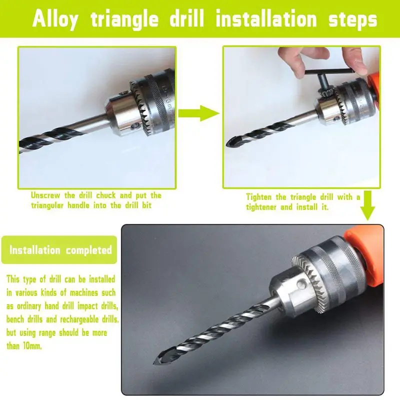 Специальная конструкция: u-образная конструкция с быстрым удалением пыли, 3-плоская хвостовик позволяет держать сверло плотно и стабильно в электрической дрели.