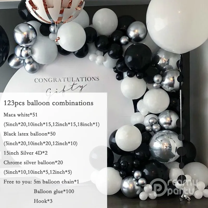 125 шт мраморные воздушные шары-гирлянды набор Хромовая Серебряная черно-белая АРКА воздушных шаров День рождения свадьбы детский душ голливудский вечерние Декор