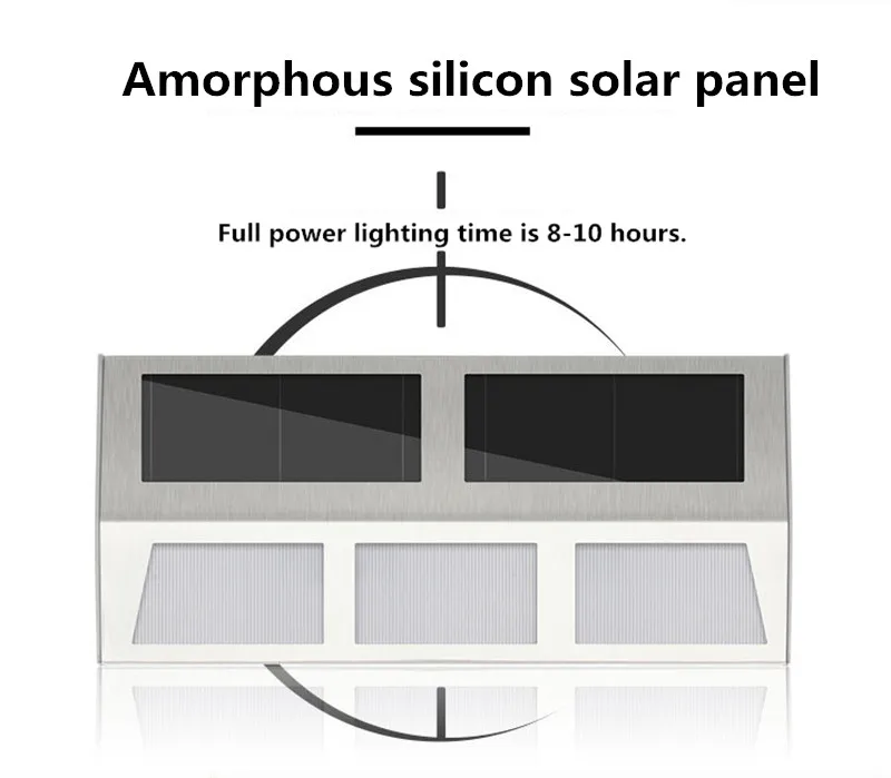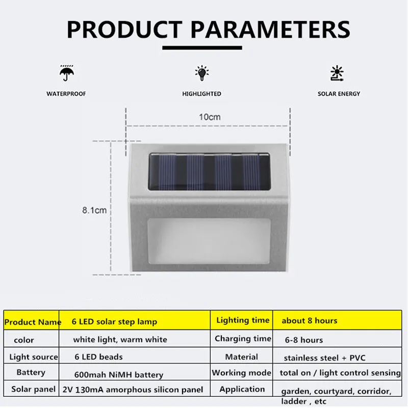 Светильник для лестницы из нержавеющей стали с солнечной батареей, 6 светодиодов