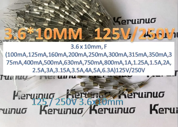 3,6x10 мм F100mA ,125mA,160mA,200mA,250mA,300mA,315mA,350mA,375mA,400mA,500mA,630mA,750mA,800mA,F1A,1.25A,1.5A,2A,2.5A,3A,3.15A,3.5A,4A,5A,6.3A)125 В/250 В, быстрое действие, патрон стеклянная трубка предохранитель с Pigtail,UL/CSA утвержден