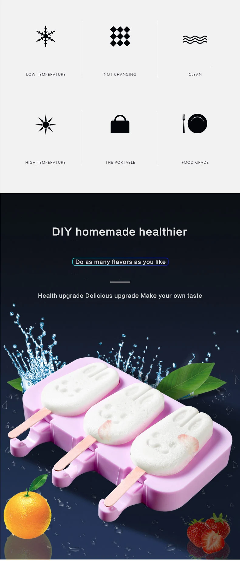 Спецификация Рисунок: Рождественская елка/Овальная/Снеговик/полоса Цвет: фиолетовый Размер изделия: 195*100*25 мм Материал: силикон Сертификация: одобрено FDA Диапазон температур: -40-230 ° Комплектация: 1 * Форма для мороженого 50 * деревянные палочки Описание товара <Нетоксичный материал: форма для мороженого изготовлена из пищевого силиконового материала, который одобрен FDA, нетоксичный, без запаха. <Формы мульчи: Форма 3D, мягкие формы для мороженого могут быть использованы для создания различных форм, без проливания. <Многоразовые: формы для мороженого поставляются с 3-полостной формой для Фруктового мороженого и 50 шт. палочек для Фруктового мороженого, могут использоваться много раз, прочные и гибкие, он не будет трескаться или выцветать. <Антипригарная и гибкая: антипригарная поверхность и Большая гибкость делают силиконовую форму для мороженого быстрым замораживанием. Вы просто выскочите с прессованными пальцами, легко отпустите идеальную форму и очистите. <Диапазон температур: силиконовые формы для мороженого не трескаются или не ломаются, широкий диапазон температур: -40-230 °. <Совместим с: можно использовать в духовке, микроволновой печи, морозильной камере и посудомоечной машине. <Легко чистить: с антипригарной поверхностью, легко чистить, ручная стирка или мыть в посудомоечной машине. <Широкое применение: Может использоваться как форма для мороженого, форма для эскимо, форма для торта, форма для десерта, форма для мороженого единорога и многое другое. <Съемная крышка: поставляется со съемной крышкой, она помогает предотвратить утечку. И форма для мороженого может быть сложена, экономия пространства. <Теплые советы: 1. Пожалуйста, держите эскимо формы вдали от огня и солнечного света. 2. Перед использованием очистите водой. 3. Пожалуйста, храните товар в сухом месте. <Примечания: 1. Пожалуйста, учитывайте разницу в 1-3 мм из-за ручного измерения, спасибо! 2. Из-за разницы между различными мониторами, пожалуйста, поймите, что изображение может не отражать фактический цвет товара.