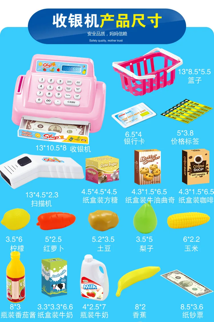 Наименование: кассовый аппарат Упаковка: полипропиленовый пакет Материал: пластик Размеры: как показано на рисунке Подходящий возраст: 3 года и выше Цвет: розовый, зеленый Это отличный подарок, который может имитировать Забавный маленький супермаркет, шоппинг, продажу и позволить ребенку испытать удовольствие от покупок Примечание: 1. При ручном измерении возможна погрешность в 1-2 см 2. Из-за различий между различными мониторами изображение может не отражать фактический цвет проекта. 3. Если у вас есть какие-либо вопросы, пожалуйста, свяжитесь с нами вовремя, мы ответим в течение 12 часовКупила по цене распродажи, потому что этот набор бы без оригинальной коробки. Ну ничего, все равно будем упаковывать в праздничную... Читать отзыв полностью...