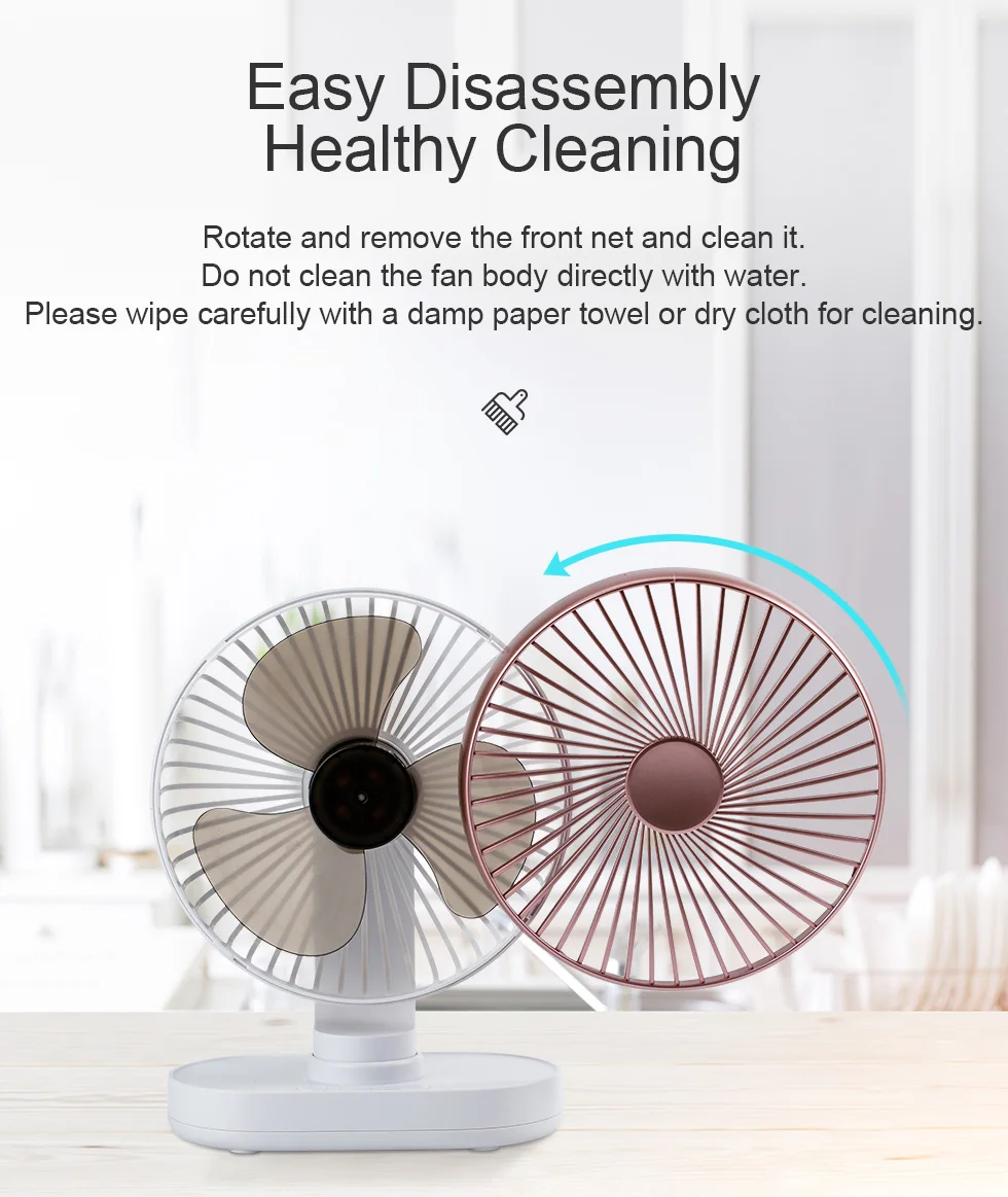 ✔Бесщеточный мотор с медным сердечником 4 Вт выбран для уменьшения шума, уменьшения тепла от длительного использования эффективно и продления срока службы вентиляторов. Даже в режиме очень высокой скорости уровень шума составляет менее 40 дБ. ✔Осциллирующий Настольный вентилятор с автоматической горизонтальной осцилляцией (90 °), позволяет использовать многосекторный ветер. ✔Регулируйте головку вентилятора гибко, чтобы сделать вас более свободными и комфортными. Регулировка вверх и вниз на 90 градусов. ✔2 кнопки управления, вы можете управлять 4 скоростями ветра (естественный/Нормальный/сильный/супер сильный) и выключить с помощью кнопки питания. Кнопка «S» регулирует вращение вентиляторов. ✔Портативный Настольный вентилятор с портами Micro-USB и USB-TypeC для зарядки. Совместим с ПК/ноутбуками, банками питания, автомобильными зарядными устройствами и другими источниками питания с USB-подключением. ✔Легко моется. Съемная передняя крышка легко снимается для очистки лезвия вентилятора.