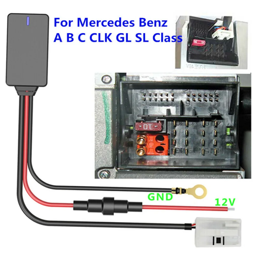 • Разъем 12-pin-код для Mercedes в проигрыватель компакт-дисков Джек (пожалуйста, подтвердите соответствующее гнездо), подключить модуль Bluetooth на вашем телефоне, выберите с разъемом подачи внешнего сигнала aux источник И вы можете воспроизводить свою мобильную музыку.