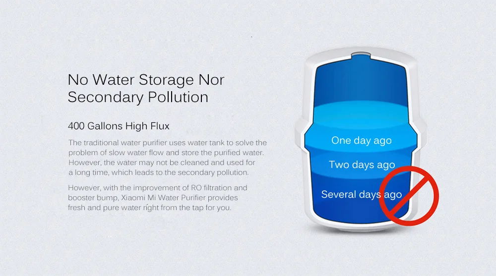 400 галлонов большого расхода, нет необходимости хранить воду, Избегайте вторичного загрязнения