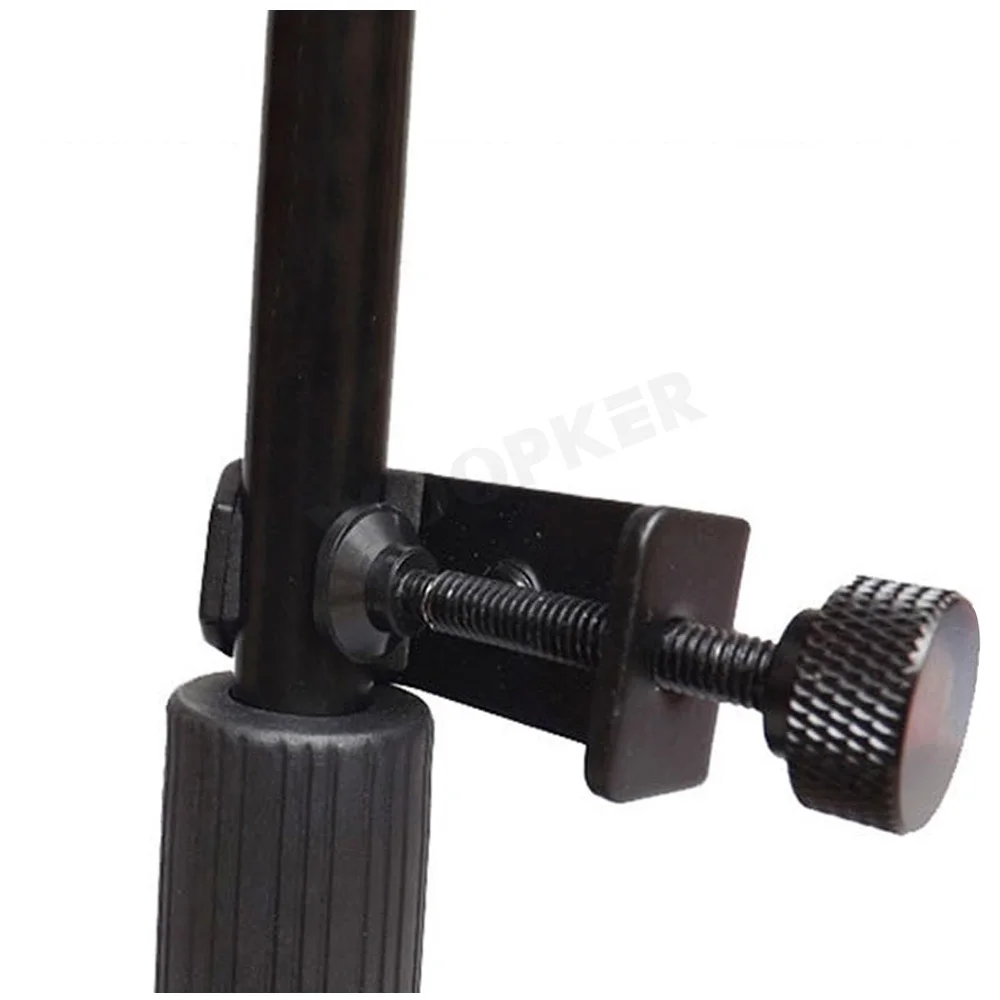 2). Регулируемый зажим надежно фиксируется на любой подставке для микрофона.