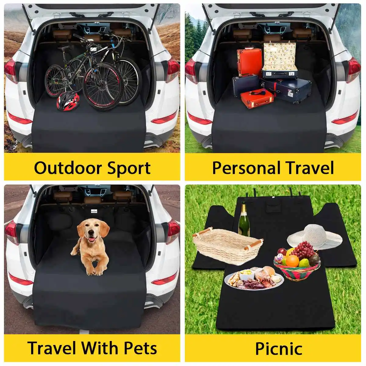 ★Защита автомобиля-Защитите свою грузовую зону от грязи, садовых вещей, меха домашних животных и когтей, а также держите свою собаку в сухости и порядке в течение всех дней. Длинный клапан бампера, который простирается вниз, чтобы защитить ваш бампер от когтей или царапин при погрузке и разгрузке.