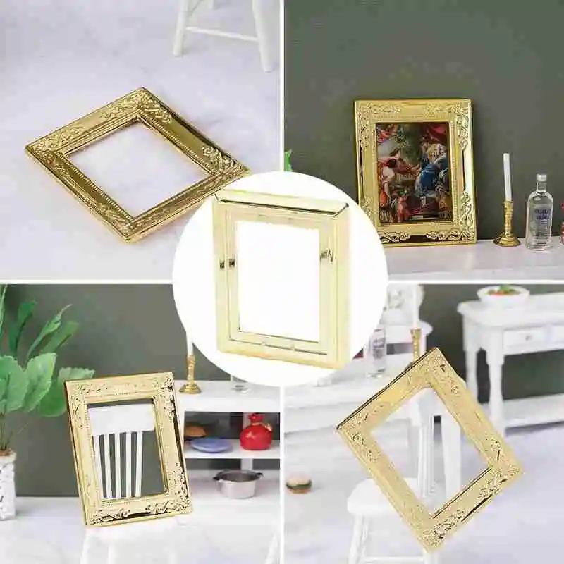 1:12 Кукольный домик имитация квадратная Золотая фоторамка модель DIY кукольный домик мини мебель украшение сцены кукольный домик аксессуары