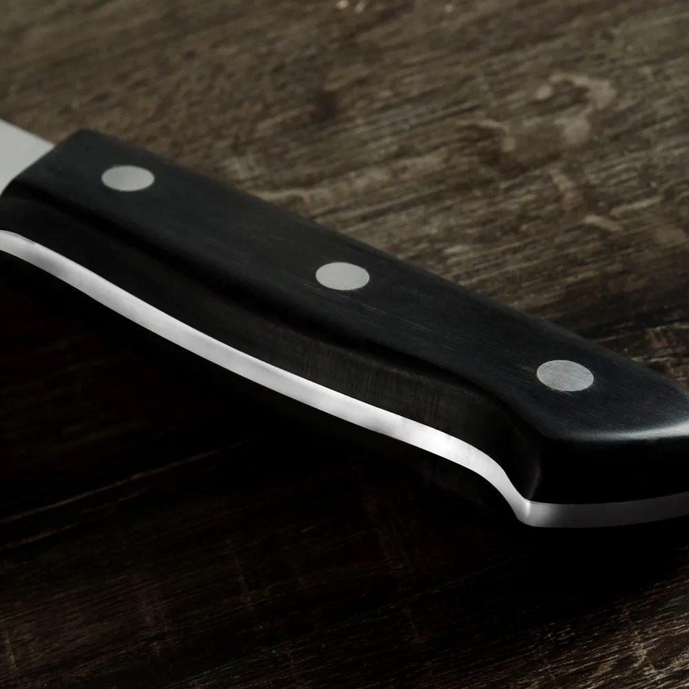 Этот нож шеф-повара мясника изготовлен из нержавеющей стали 7cr17, ручка и лезвие интегрированы без пайки, который является прочным и прочным для устранения сломанной ручки
