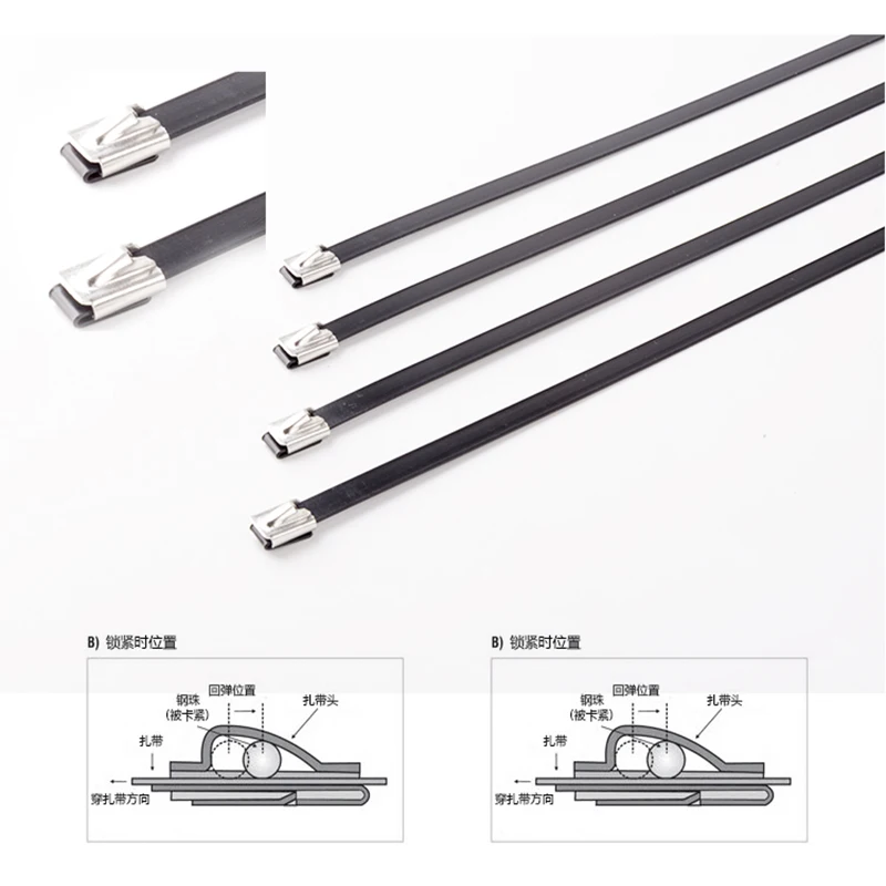 Эти самоблокирующиеся стяжки из нержавеющей стали предназначены для использования во неблагоприятных условиях окружающей среды. Высокосортная сталь сопротивляется поломке от длительного воздействия температуры, химикатов, радиации и других коррозионных экстремальных явлений.