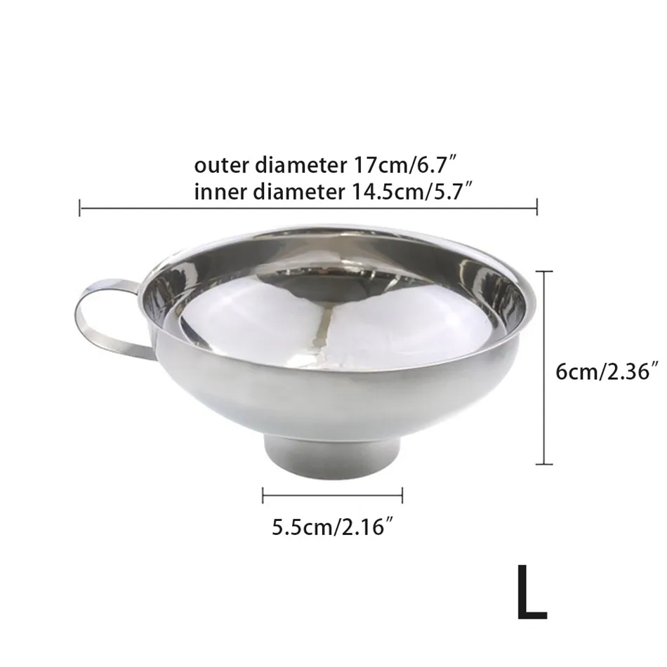 Нержавеющая сталь широкий рот консервирование кухонные инструменты Воронка чашка Хоппер фильтр еда соленья варенья Воронка Кухонные гаджеты Описание: Материал: Нержавеющая сталь Размеры: большой: Наружный диаметр 17 см, внутренний диаметр 14,5 см, высота 6 см Маленький: Наружный диаметр 13 см, внутренний диаметр 10 см, высота 4 см Цвет: серебро Количество: 1 Воронка Упаковка: мешок из полиуретана с открытыми порами Особенности: 1. Изготовлен из высококачественной нержавеющей стали, не легко ржавеет и не легко деформируется. 2. Более толстый дизайн, делает воронку более прочной. 3. Внутренняя и внешняя зеркальная полировка, чистка проще. 4. Два размера воронки калибра для заполнения широкого спектра продуктов питания. 5. Цельное формование, плавное наполнение ингредиентов, без грязи. Посылка включает в себя: 1 Воронка Примечания: 1. Пожалуйста, учитывайте разницу в 1-3 см из-за ручного измерения. 2. Из-за различных дисплеев и другого светильник, изображение может не показать фактический цвет товара. Спасибо за понимание.