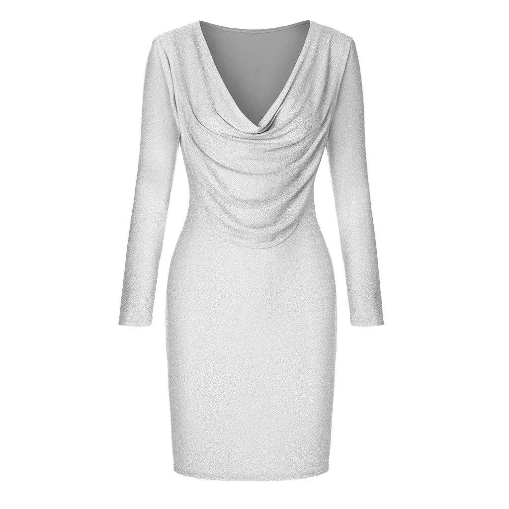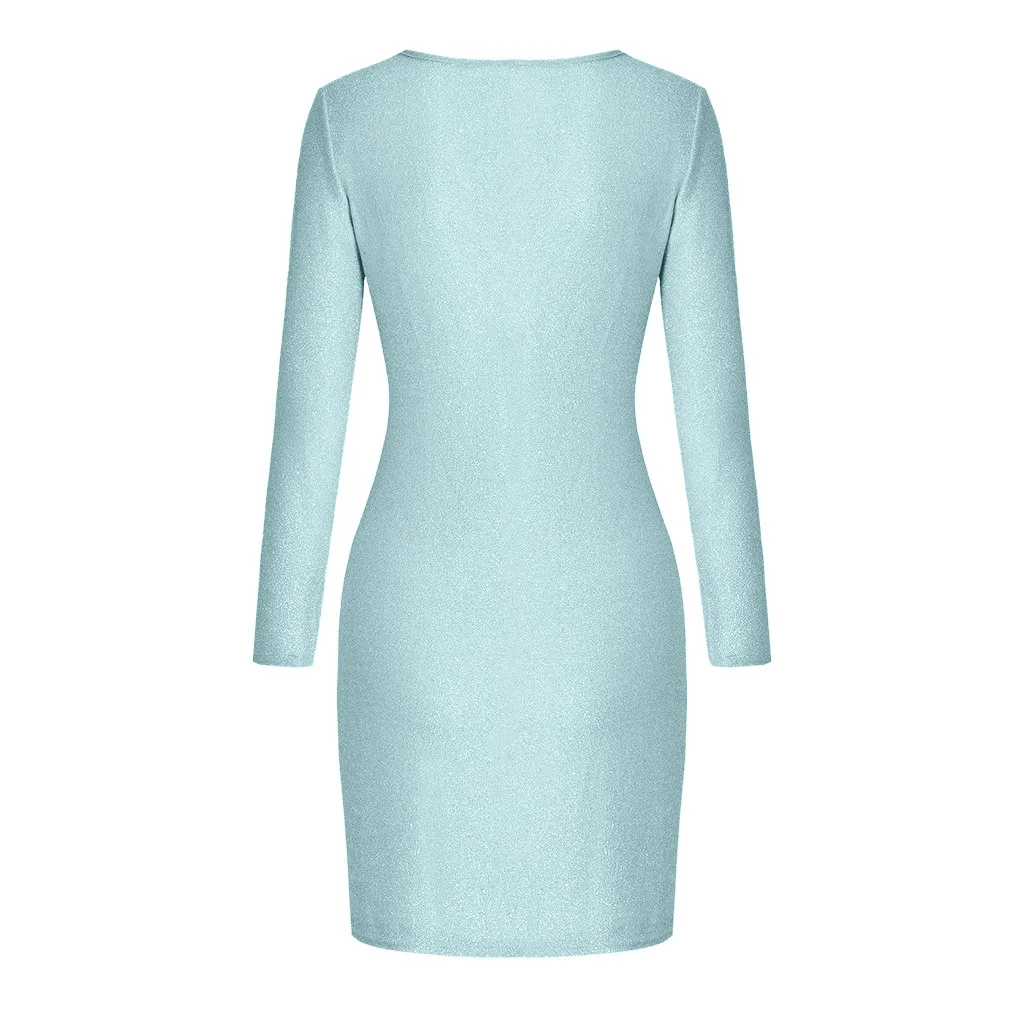 Женское облегающее платье мини с блестками, v-образным вырезом и длинным рукавом, вечерние платья