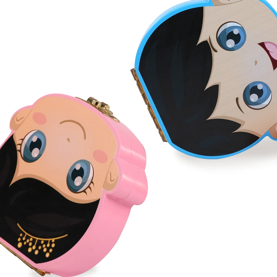 Милая деревянная коробка для зубов для маленьких мальчиков и девочек, английский/испанский молочный зуб, пупочный органайзер для хранения, сувенирный чехол для мальчиков и девочек, подарок для малышей