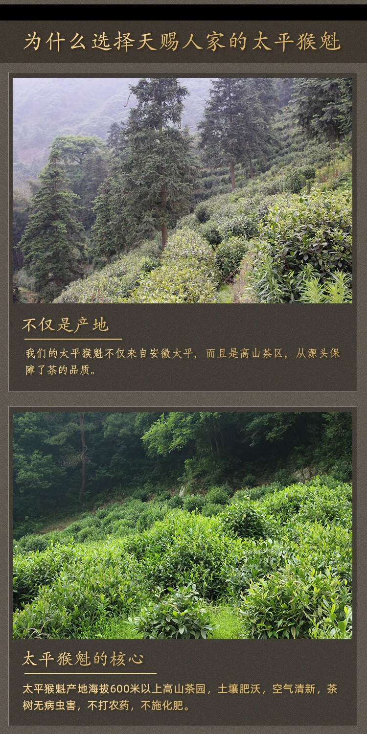 Taiping Monkey Queen, один из известных чая в китайской истории, это своего рода зеленый чай. Taiping Monkey Queen имеет два листа с бутонами, плоскими и прямыми, естественно растягивающимися и скрытыми в белом цвете. Он имеет репутацию «Королева обезьяны имеет два острых конца, не разбросанные, не скрученные, не свернутые». Листья зеленые и ровные, вены темно-красные, широко известные как «красная шелковая нить». Аромат орхидеи очень освежающий, мягкий и сладкий вкус, суп чистый и зеленый, дно листьев нежное и ровное, а почки и листья становятся крепкими.