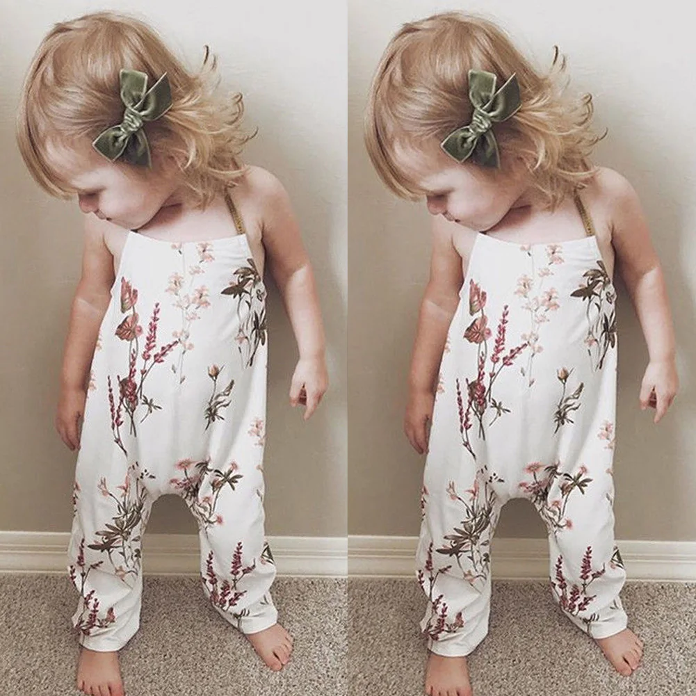 Cotton Toddler Kids Baby Girl Flower Halter Strap Romper Floral Jumpsuit Casual Playsuit Outfits Sunsuit Summer Clothes 6M-5Y