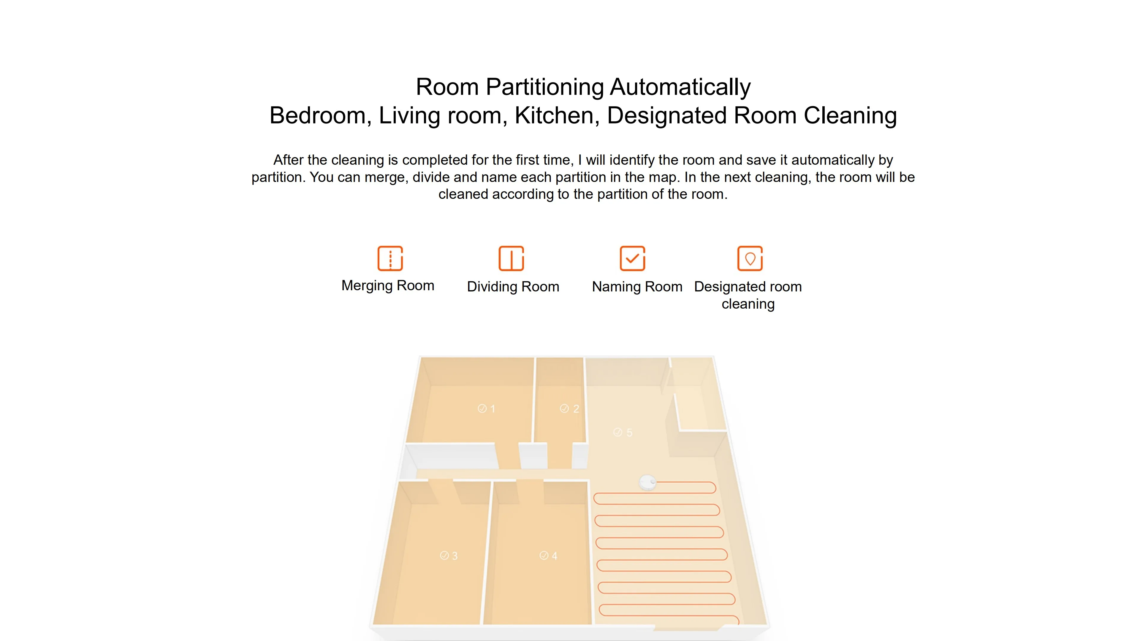 Вакуум определит вашу комнату после чистки в первый раз Разделительная комната для слияния может выбрать дополнительную комнату для уборки
