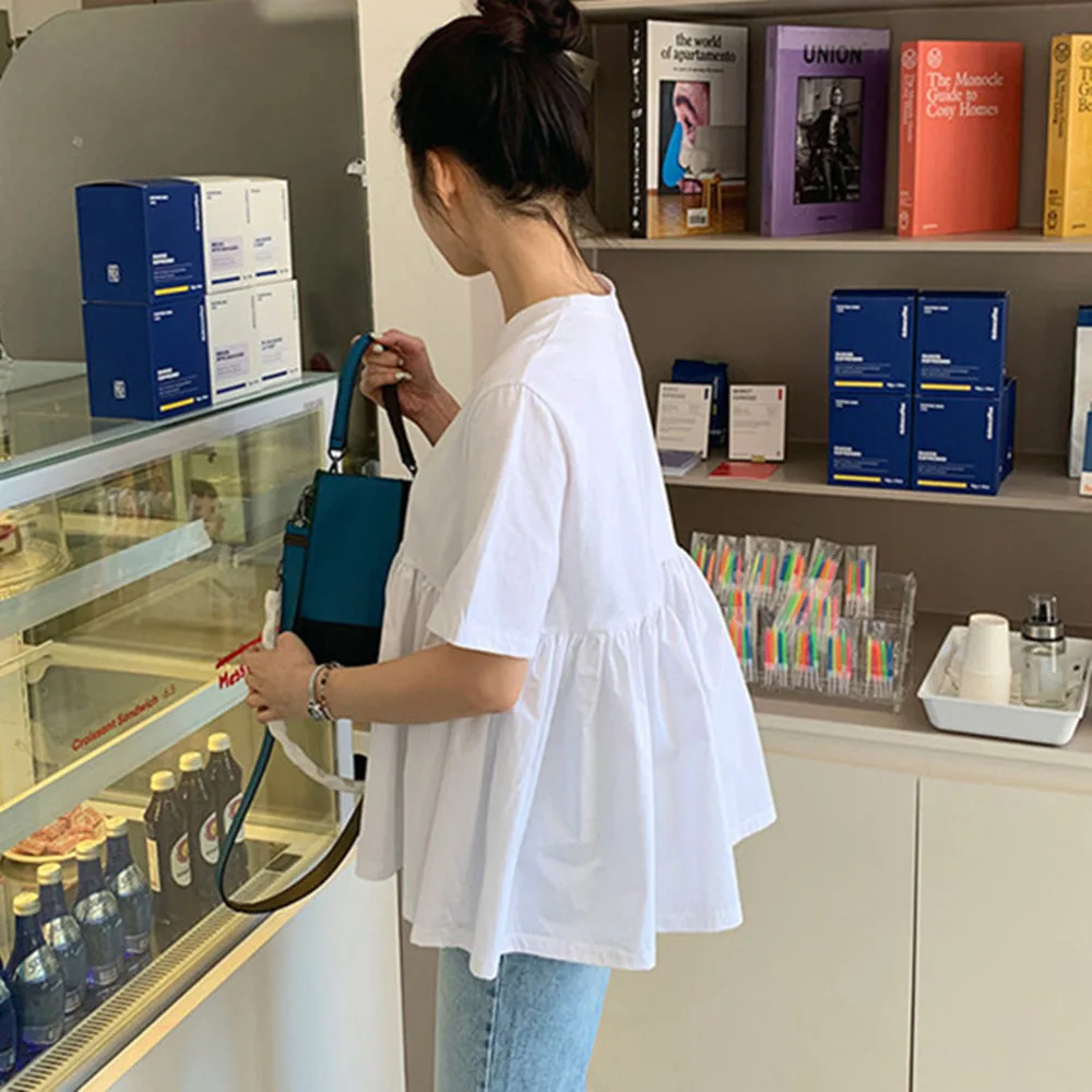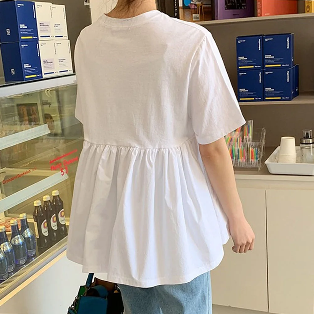 Летняя Базовая белая футболка, милая длинная футболка, Женская Повседневная футболка большого размера в Корейском стиле, Японская уличная Асимметричная футболка для женщин