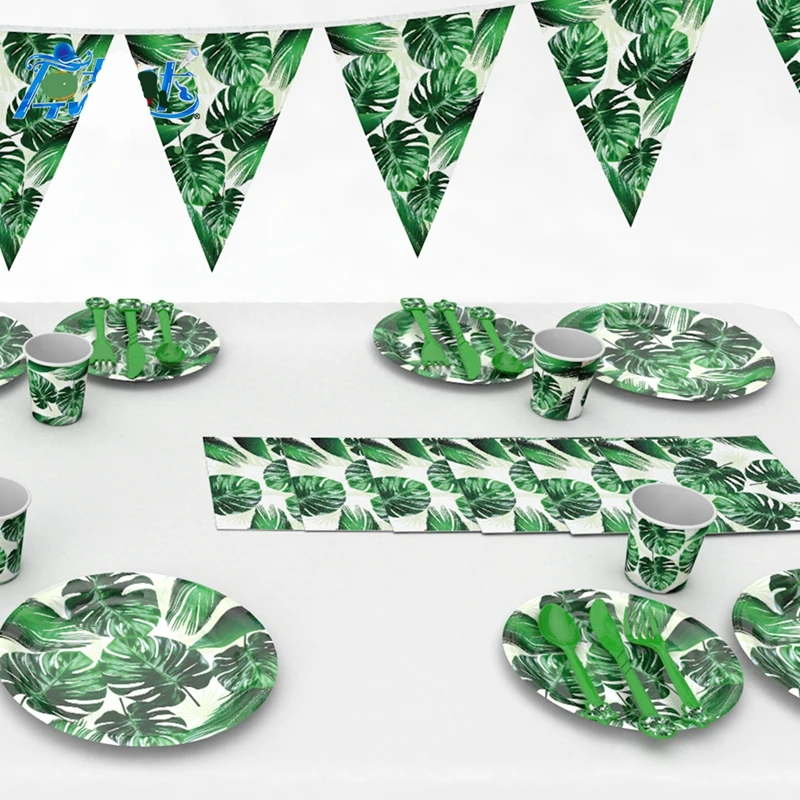 Зеленая одноразовая посуда Monstera Leaf Гавайская тропическая посуда для вечеринок Гавайские луауские летние праздничные декорации джунгли сафари