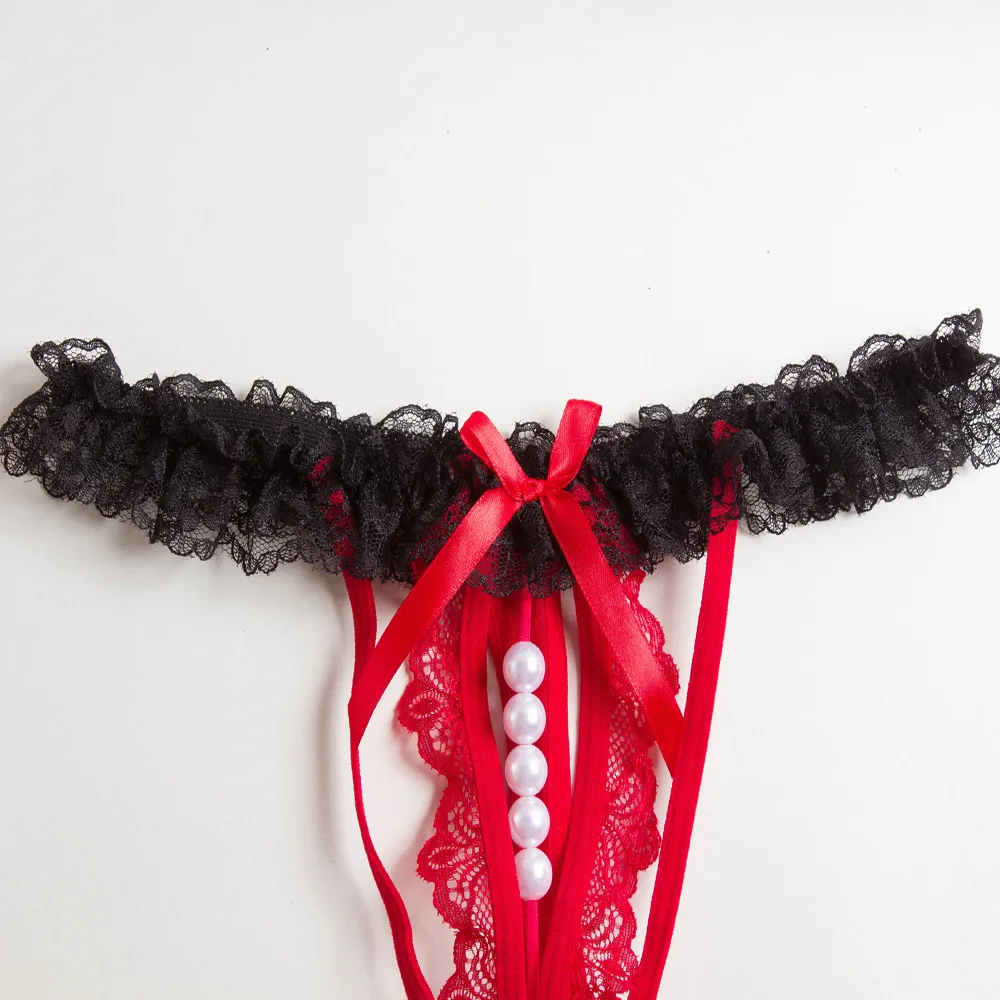 Женские кружевные сексуальные трусики-стринги с жемчугом