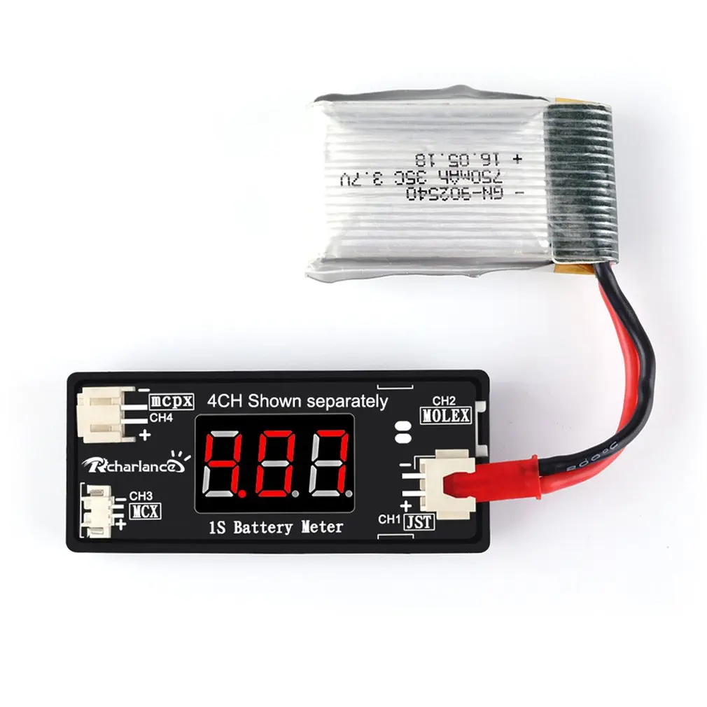 1S LiPo батарея тестер напряжения Измеритель для RC Дрон Квадрокоптер батарея поддержка JST MCX PH 2,0, Micro Losi кабель
