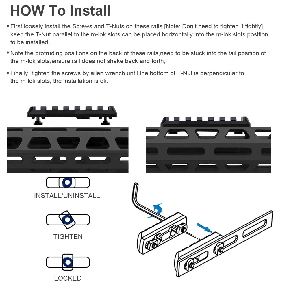 1. Совместимость с рельсами системы M-Lok, 5 различных размеров на ваш выбор