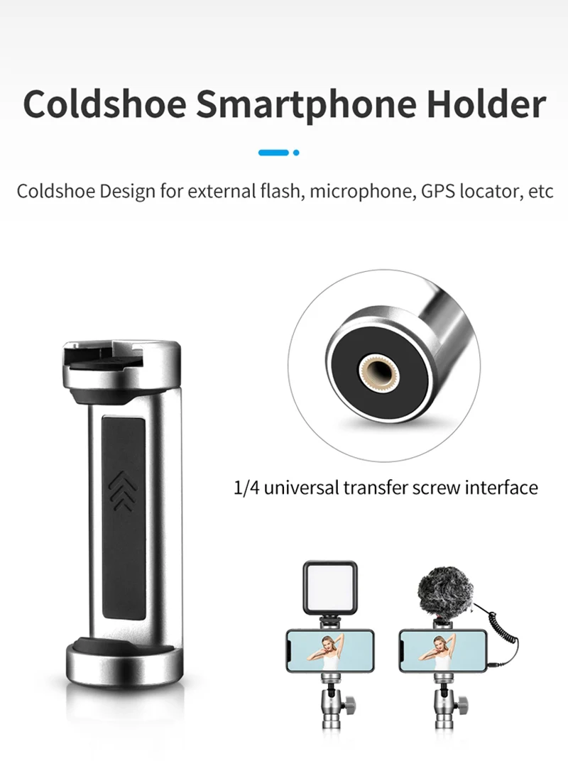 -Интерфейс расширения 1/4, может быть подключен к волшебной руке, заполняющему свету, микрофону и т. д., со стандартным винтовым портом 1/4, может быть подключен к мобильным телефонам, камерам, Gopro и т. д.