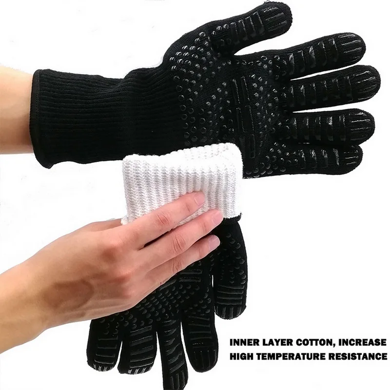 << Application: Perfect to protect your hand for grilling, smoking, cooking, BBQ, baking, or handling super hot items in the kitchen and outdoors.