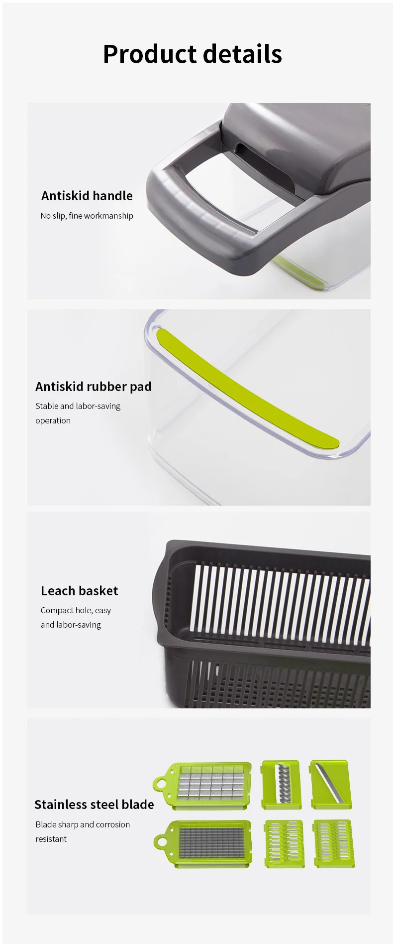 Продукт: овощерезка Myvit со стальным лезвием, мандолин, овощерезка для картофеля, морковный сыр, Овощная терка, кухонные принадлежности Кухонный помощник: Этот ручной слайсер изготовлен из пищевой нержавеющей стали и АБС-пластика без BPA. Он предлагает все функциональные возможности нескольких приборов со сменными нержавеющими лезвиями. Эти лезвия можно разрезать через все виды овощей, терка сыра, нарезка картофеля и резки фруктов, даже можно создать пастообразные овощи или пюре. Хранение сбоку: у него есть собственный контейнер для лопастей, чтобы положить, никогда не терять их или тратить время на поиск Экономьте время и деньги: С помощью этого кухонного режущего набора вы можете сэкономить 70% времени, попрощайтесь с водяными глазами, когда нарезаете лук; И поможет вам подготовить еду более элегантно.