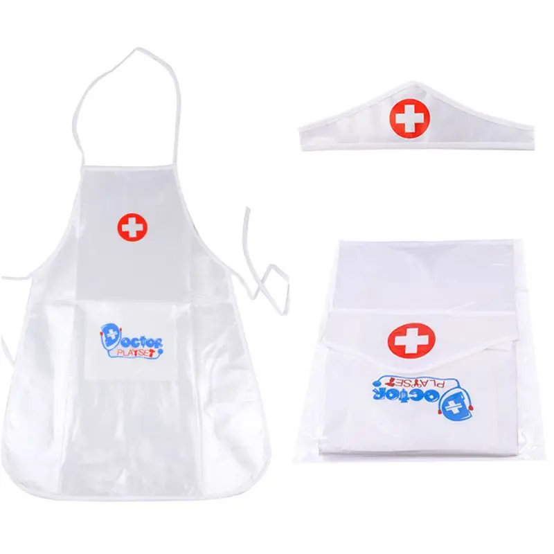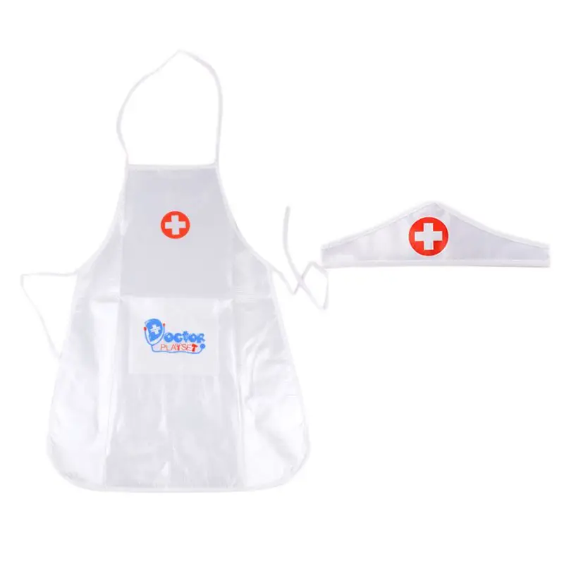 Children Kids Doctor Nurse Cosplay Costume Adjustable Apron with Headdress Hat Uniforms Performance Halloween Party Wear Pretend Game Toys