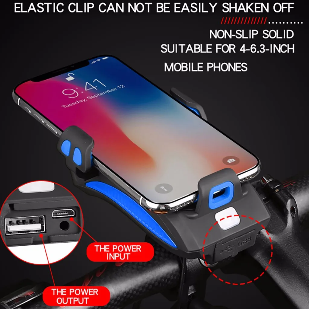 USB Перезаряжаемый светильник для головы велосипеда, 4 в 1 водонепроницаемый велосипедный светильник с велосипедным рожком, держателем для телефона и зарядным устройством, велосипедный защитный передний светильник Commu.ter с простой установкой