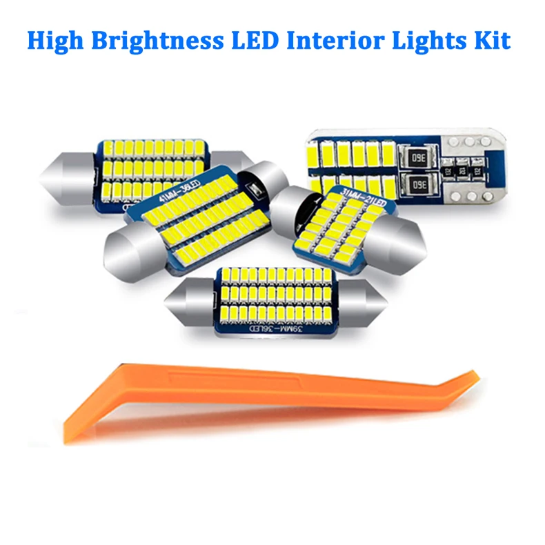 Посылка включает в себя: Светильник карты (2 шт.) Купольный светильник (1 шт.) Туалетный зеркальный светильник (2 шт.) Светильник для багажника (2 шт.) Запасной светильник (2 шт.)