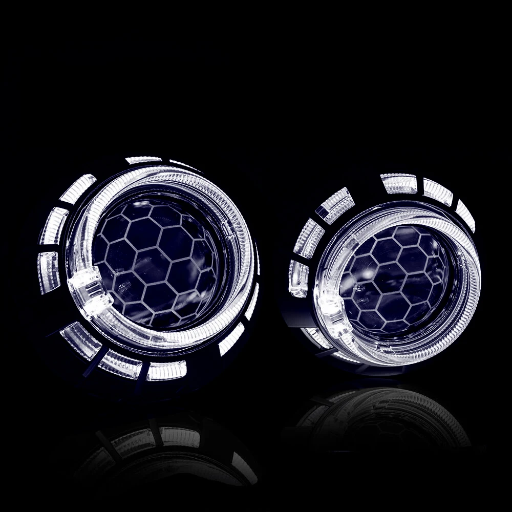 Потребляемая мощность: автомобили 12 В Размеры проектора: 2,5 дюйма Балласт: 55 Вт/35 Вт Лампа: 55 Вт/35 Вт 5000K H1 Параметры отсечки: LHD по умолчанию (если вам нужен RHD, укажите в примечаниях к заказу). Левый руль (LHD) -рулевое колесо слева Подходит для гнезда H4, H7 Светодиодный Angel Eyes (опционально): красный/синий/белый цвет. Требуемые лампы: стандартные H1 (настоятельно рекомендуются лампы HID) Характеристика: Биксеноновые проекторы обеспечивают как дальний, так и ближний свет. Дизайн: Сотовые линзы с гравировкой в футбольном стиле придадут свежий вид головному светильник льнику вашего автомобиля, а изображение не повлияет на светоотдачу линзы.
