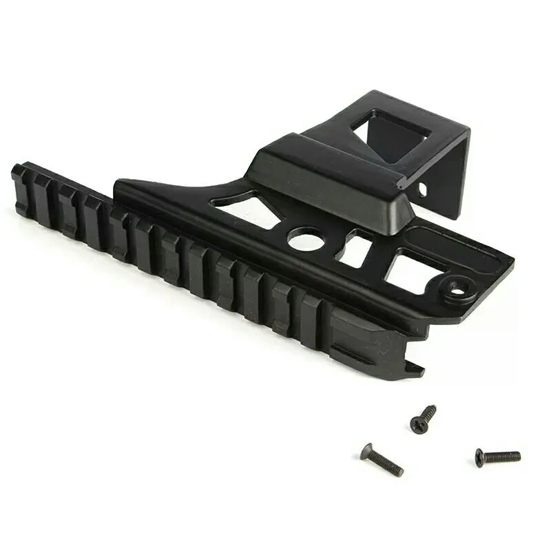 -Для AK-47, AK-47s и бета spetznaz Модель AEG, металлическая конструкция -Стандартная ширина направляющей 20 мм -Легко подключить, установить за считанные секунды -Полностью матовая черная отделка -Полностью металлическая конструкция -Длина: 15 см -Вес: 130 г